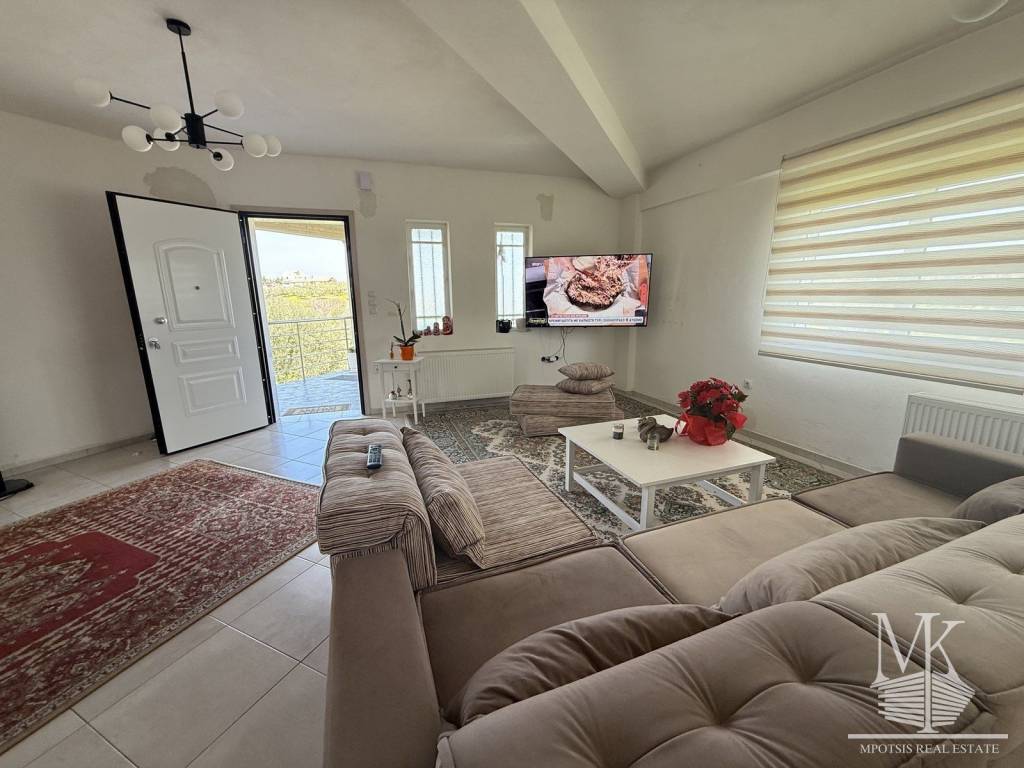 Availability Vacant, Facade in Rural road, Access Asphalt, Orientation East, View Hills, Bright Bright Bright, Distance from market 4800meters, Distance from sea 4200meters, Distance from public transport 4800meters, Near to a main road, Urban location of the property Out of plan, Noise Quiet, Plot area 2100sq.m, Suitable For permanent and holiday residence, Building permit Yes, Elevated Ground Floor Area 65sq.m, 1st floor area 65sq.m., Property Condition Habitable but Minor renovation needs, Exterior condition of the property Needs Finished, Energy class D+, Large balkonies Large Balconies, Electric water heater, Dual-energy solar water heater, Internal stairway, Exterior doors Simple, Frames Aluminum, Exterior type windows Opening, Glazing Double, Flooring type Floor Type Tile, Kitchen type Open plan with dining area MPOTSIS REAL ESTATE