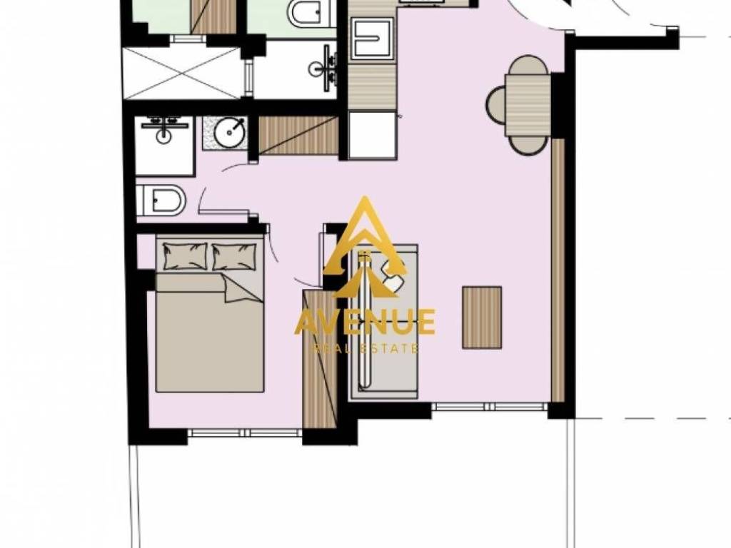 This property features 1 bedrooms, an open kitchen with a living room and a bathroom.