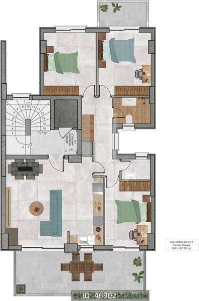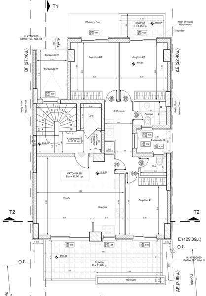 Nea Ionia (Attica - Northern Suburbs) - Floor Apartment 98sqm bedrooms 3, levels 1, 5th, under construction, year built 2024, energy class A+, living room, kitchen, bathroom, wc, heating type: autonomous (natural gas), air condition, parking ground floor, quiet, dual aspect apartment, luminous, frontage, painted, electric roller shutters, storage space 12sqm, solar heater, boiler, external thermal insulation, balconies, large balconies, elevator, aluminum frames, double glazed windows, three phase electricity, night electricity discount rate, secure door, alarm, video doorbell, satellite, internet, pets allowed, within city plan, residential zone, access from asphalt, close to metro/train (up to 500m), close to market (up to 500m).
