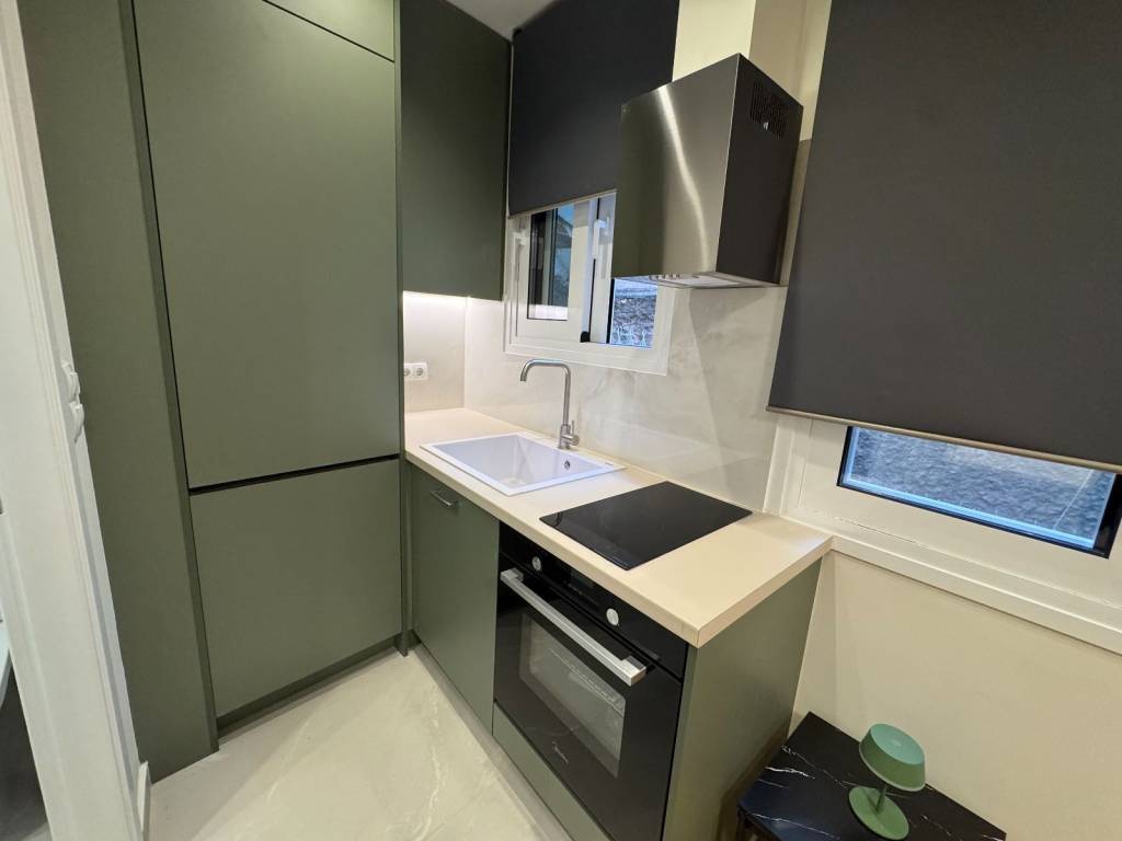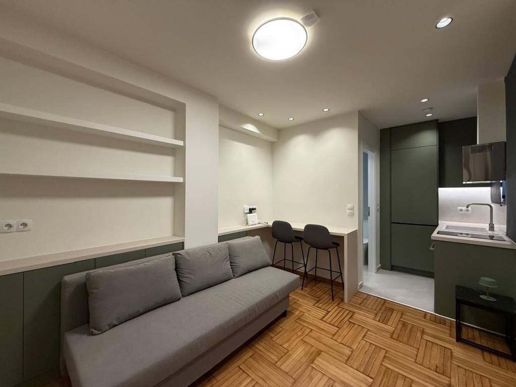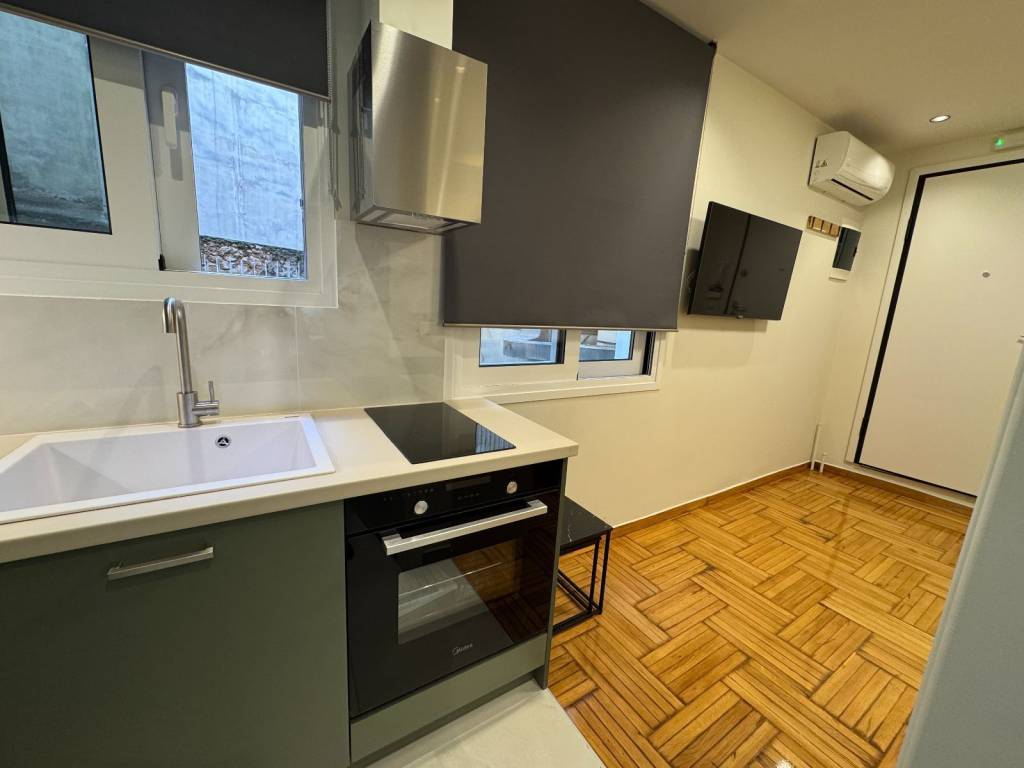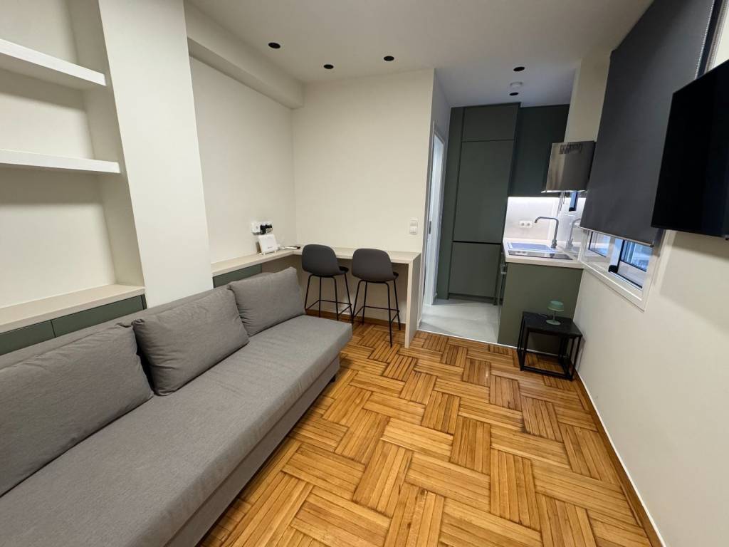 Available for rent is a modern 17 sq.m. apartment in the area of ​​Gyzi, fully renovated with an emphasis on functionality, comfort and energy efficiency. The property has undergone a total renovation (electrical - plumbing) and has new aluminum frames with double energy glazing. Features: – Fully equipped kitchen with built-in electrical appliances (washing machine, dryer, refrigerator, oven) – WiFi air conditioning – Water heater – Bathroom heater with time delay (automatic shutdown) – LED lighting & hidden kitchen lights – Alarm system – Smoke detector & security lighting Advanced presence & energy saving system: Sensors in the main room and bathroom detect the presence of a person and keep the lighting and appliances active while the apartment is in use. In case of absence, the lights, air conditioner and water heater are automatically turned off, preventing unnecessary consumption. The apartment is delivered fully furnished with: Sofa, bed, TV, stool, as well as an outdoor table with two chairs on the terrace. With an increase in the price to 700 euros, the following are included: – Internet Fiber 100Mbps – Water – Shared Ideal for professionals or individuals looking for a modern, functional and energy-efficient living space in a central location of Athens.