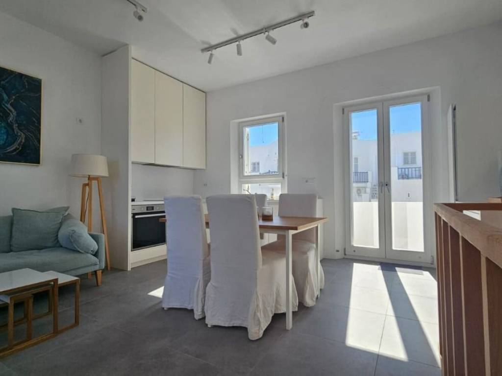 This modern Cycladic maisonette is located near Ag Anargyroi beach, very close to the center of picturesque Naoussa and just a 5-minute drive from the beautiful beaches of Kolimbitres and Santa Maria. This new, energy-efficient home offers a double bedroom and a single bedroom, and panoramic views of the sea and Kolimbitres Bay. This home offers its residents the highest levels of elegance and comfort, as well as a very high energy and structural standard, thanks to the excellent construction techniques and materials used. The center of Naoussa, with its marina, cosmopolitan life, bars, boutiques, and restaurants, is just a few minutes' walk away. Parikia, with its port, is a 15-minute drive away, and the airport is about 20 minutes away. This fresh, spacious, and bright home is easily accessible from the beaches of Laggeri, Ampelas, and Monastiri by car in just a few minutes. This house is ideal for families or investors looking for a property in Naoussa with large fresh spaces, close to the sea and the center of Noussa and with a splendid sea view. At Errikos Kohls Immobilien Consulting, we combine international professionalism with genuine local expertise in the Cyclades. With our local office on Paros, we will be always close by to help you find not just a property, but a true home - visit www.kohls-ic.com to explore more than 1000 exceptional properties in the Cyclades.