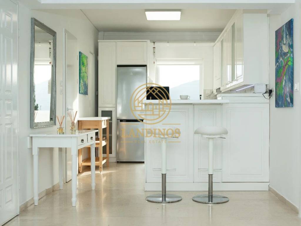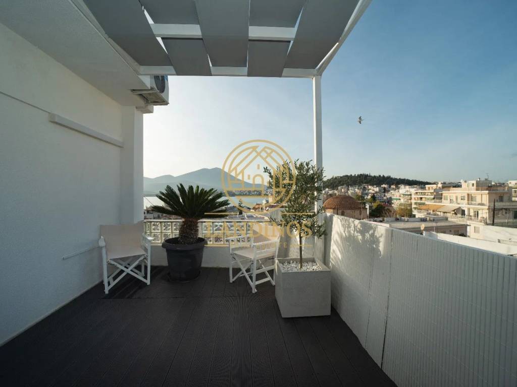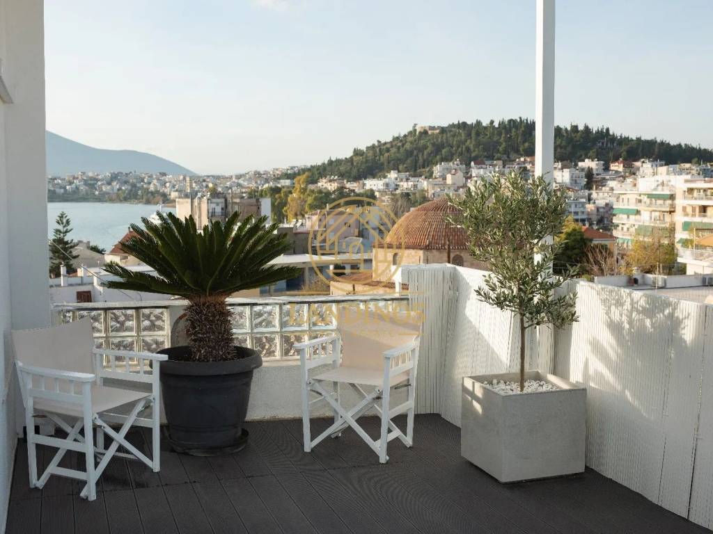 In the heart of Chalkida, in the Agia Paraskevi area, a luxurious penthouse apartment of 90 sq.m. is for rent on the 4th floor, just 100 meters from the beach. The property was completely renovated in 2024 and features brand new German PVC frames for excellent thermal and sound insulation. It consists of 2 bedrooms, an open-plan living room and kitchen and 2 bathrooms. It is fully furnished with modern and brand new furniture and electrical appliances. Amenities: • Individual heating with A/C • Energy-efficient fireplace • Full LED lighting • Heated floor in the bathroom • Wi-Fi electrical panel – controlled via application • Balconies of 50 sq.m. with unlimited views of the sea, castle and bridge • Parking space in the basement A modern and very well-maintained apartment in an excellent location, ideal for comfortable and quality living.