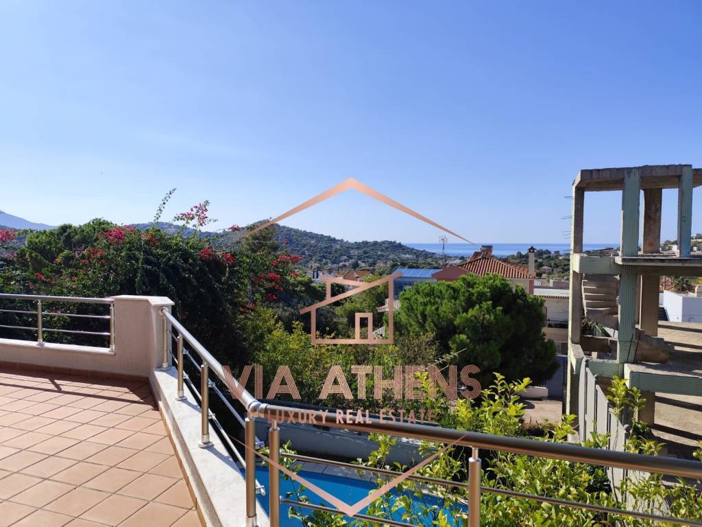 FURNITURED House for Rent in the Area of Lagonisi - Agia Marina This is a stunning 430 sq.m. house with 4 levels, featuring a swimming pool and garden, with elevator, ideal for a large family. Built in 2009, the property includes a total of 7 master bedrooms, living rooms, and kitchens on each level, 2 fireplaces, large windows, and terraces with excellent sea views. On the -1 level, which contains the garden, swimming pool, and BBQ area, there is 1 master bedroom, 1 WC, a kitchen, living room, and sitting area. On the ground floor, which serves as the main entrance of the house, there is a living room with a fireplace, sitting area, terrace with sea view, kitchen, WC, and 1 master bedroom. On the first floor, there are 2 master bedrooms, a living room, sitting area, fireplace, terrace with sea view, kitchenette, and WC. On the second level, there are another 2 master bedrooms, a sitting area, terrace with sea view, and WC. The third level, which is the attic, features 1 master bedroom, sitting area, and terrace with a view. The house is bright, surrounded by greenery, and located in a quiet area. It also offers a cellar, autonomous heating on each level, storage spaces, a separate room for pool and heating equipment, boiler, air conditioning, security door, alarm system, cameras, aluminum windows, and more. The house provides 2 parking spaces and is offered partially furnished. The energy certificate is pending issuance. Price: €3.500. VIA ATHENS REAL ESTATE, contact phone: 2121030916, +306937006261, email: info@via-athens.com
