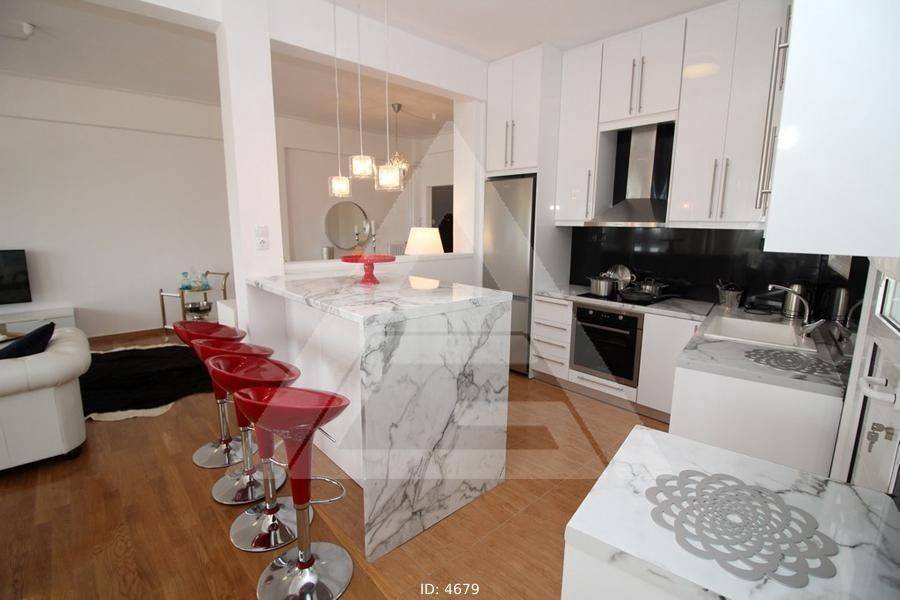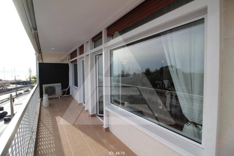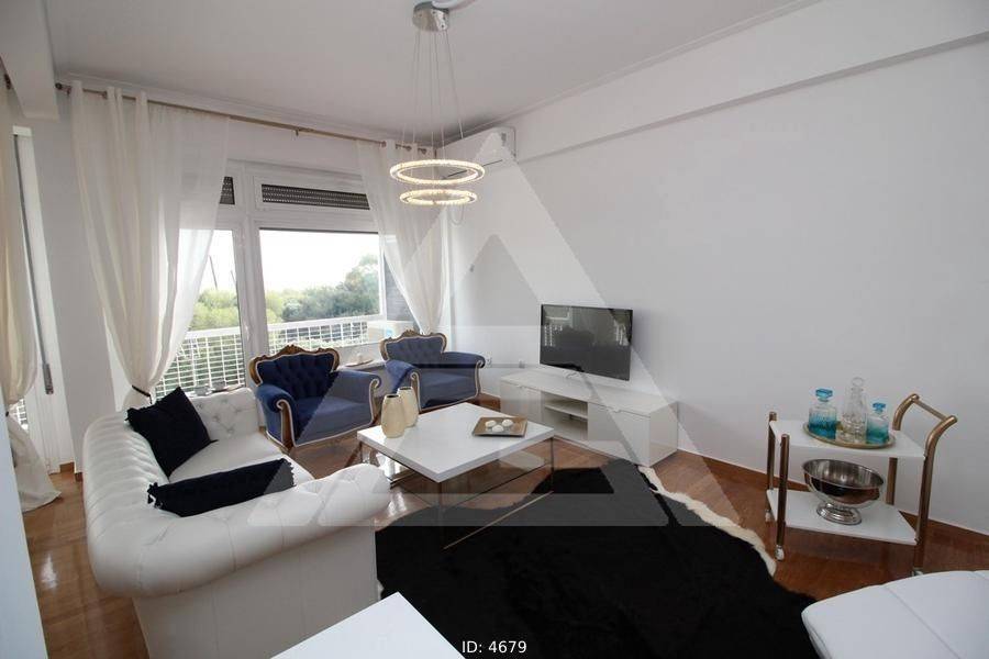 Alimos - Apartment 107sqm fully furnished, bedrooms 2, levels 1, 3rd, excellent condition, year built 1964, renovation year 2019, energy class F, living room, hall, kitchen, 2 bathrooms, wc, heating type: autonomous (natural gas), air condition, luminous, sea view, frontage, balconies, tents, elevator, built in appliances, aluminum frames, double glazed windows, wood & tile floors, secure door, luxurious, residential zone, access from asphalt.