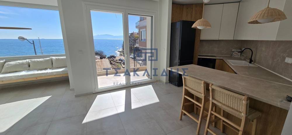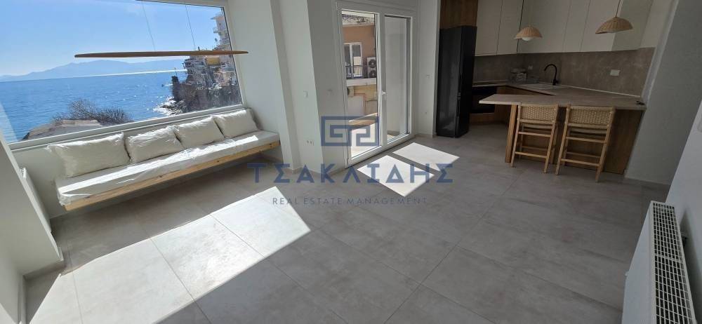 Kavala, Center: Fully renovated corner floor apartment 75 sq.m. luxury apartment with an amazing sea view on the 2nd floor (no elevator) with independent natural gas heating in a 3-story building. It consists of 2 bedrooms, 1 living room kitchen and bathroom. It is equipped with electrical appliances (wardrobe, sofa, built-in oven, refrigerator), painted and has a sea view, synthetic frames with double glazing, armored door, air conditioning, energy class B, Tile floors, awnings, screens, solar water heater. No monthly utilities. Price €730 Property Code: #85523