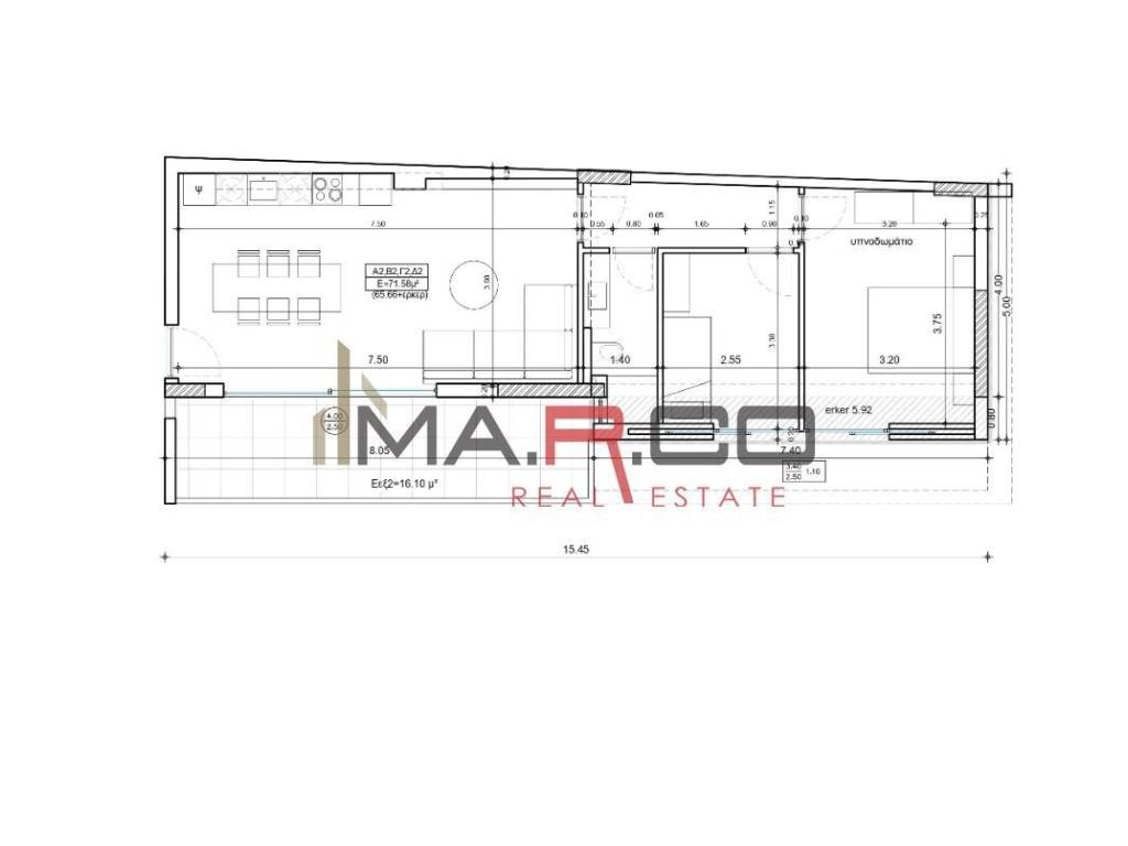 Apartment For sale, floor: 2nd, in Vrilissia - Center. The Apartment is 72 sq.m.. It consists of: 2 bedrooms, 1 bathrooms, 1 wc and it also has 1 parkings (1 Pilotis space). Its heating is Personal with Heat pump, Solar water system, Thermal insulation are also available, it has Alluminum, Thermal brake frames with Double glazed - Energy Efficient windows, the energy certificate is: A and its floors are Tiles. The property's status is: New development, Under construction, it is close to Transportation, Park, School, Square, Super Market, City Center and it has East meridian orientation. The Apartment is On Corner, With Facade, Bright, Airy, Sunny and it also has the following unique features and advantages: Window Screens, Elevator, Storage, Security door, Security alarm, Night stream, Three phase current, Fiber line, Electric shutters, Car charger. Price: €340.000. MA.R.CO REALESTATE & CONSTRUCTION, contact phone: 6944855335, 2109650870, email: info@marco-realestate.gr, website: