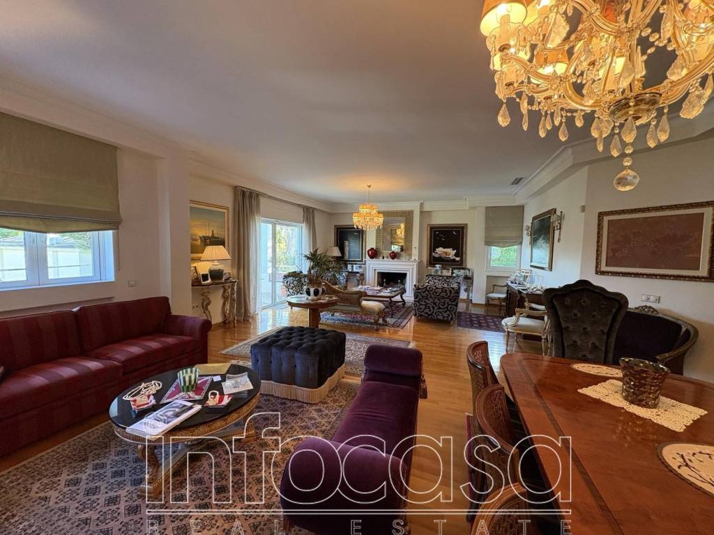 Kefalari – Luxurious 2nd & 3rd Floor Maisonette, 250 sq.m. Located in the heart of Kefalari, within walking distance to the center of Kifisia, this stunning maisonette spans the 2nd and 3rd floors of a well-maintained building and was built in 2000. It is situated in an exceptional, quiet neighborhood offering privacy and a refined residential setting. The main level (2nd floor) features an impressive reception area with large openings and a fireplace, a formal dining room, a spacious kitchen with an additional sitting area, a guest WC, and two bedrooms—each with its own bathroom. The upper level (3rd floor) includes the expansive master suite with an en-suite bathroom and walk-in closet, a home office area, and a cozy living space with a fireplace. This entire level opens out through wide openings to a large, beautifully designed terrace equipped with retractable awnings, a BBQ, and an outdoor lounge with views over Kifisia. The two levels are connected via an internal staircase as well as an elevator. Additional features include: security door, double-glazed windows, electric shutters, alarm system, two fireplaces, oak flooring, video intercom, storage room, autonomous natural gas heating with floor-by-floor zoning, and a garage space. A key advantage of this property is the independent 25 sq.m. studio with bathroom and kitchen, ideal for live-in staff or as a guest house. This is a high-value property in one of the most sought-after areas of Kifisia, with limited availability of homes of similar quality. Price: €1,380,000, Contact: Giannis Konstantinou, +30 6977313926 | +30 210 6233945 ✉️ info@infocasa.gr www.infocasa.gr