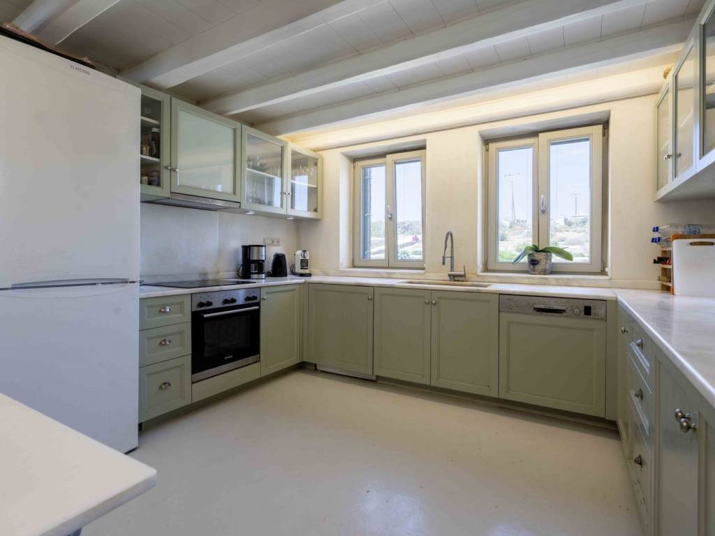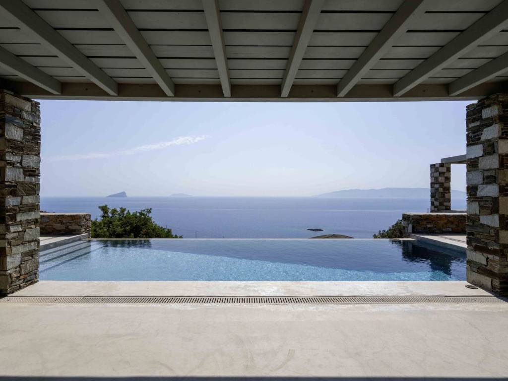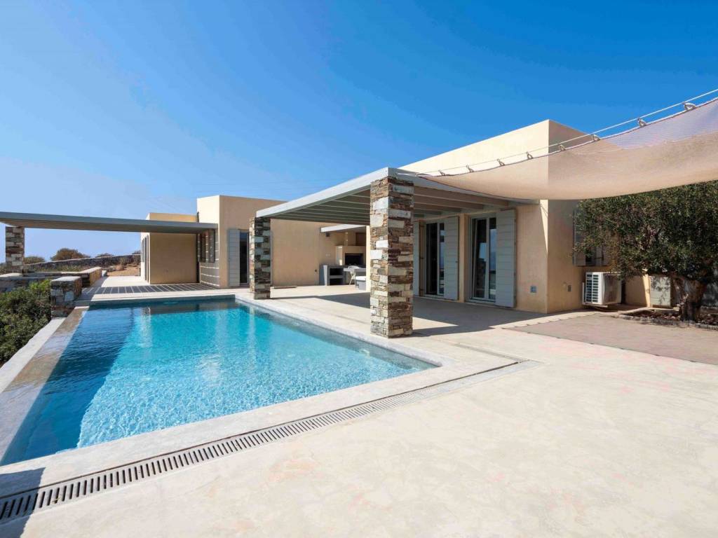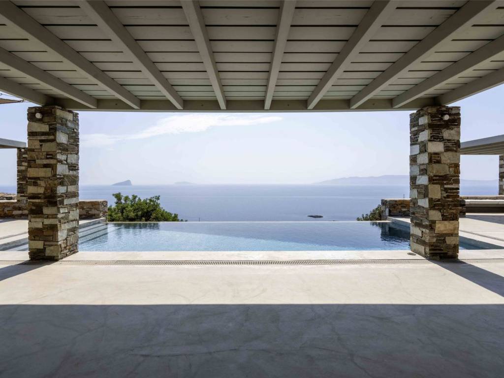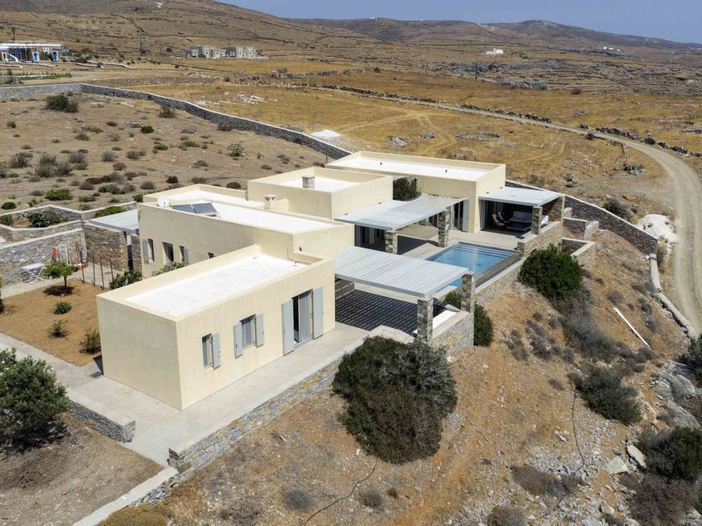 Discover this exceptional property located on the southeast side of Kythnos, just 14.5 km from the bustling port of Merichas, covering an impressive plot area of 6,283.57 square meters. The main residence boasts a spacious surface of 214.18 square meters, featuring four well-appointed bedrooms, each with an ensuite bathroom, along with a separate guest toilet and washbasin. The inviting ground floor includes a modern kitchen, dining room, and a living room featuring an energy-efficient fireplace, ensuring comfort throughout. Accessible via an internal staircase, the basement offers additional storage and utility space, including a cellar and a dedicated engine room. With amenities such as ceiling fans, air conditioning, and radiators throughout, this home is designed for year-round living. Additional features include a substantial water tank, external storage, a pergola for parking two large cars, and a solar water heater. The outdoor areas are beautifully designed with pergola-covered sitting spaces, an outdoor dining area complete with a built-in barbecue, and an infinity pool that captures stunning views of the sea and surrounding islands. This fully furnished residence is strategically nestled between two beautiful beaches, Gaidouromantra and Simousi, and is uniquely constructed in a Π shape to shield against the winds. Enjoy unobstructed vistas of Kythnos's charming stone architecture, along with breathtaking views of the nearby Cycladic islands, including Serifos, Serifopoula, Sifnos, and Syros. This property is a perfect blend of luxury and natural beauty, ready for you to make it your home. Kythnos belongs to the Cyclades and is called Thermia as it is known for its thermal springs. Unique Features: Kythnos is an up and coming holiday destination as it slowly begins to attract more and more visitors every time. The island stands out for the simplicity it offers but also the hospitality of its inhabitants. It also has an abundance of Cycladic trails, unique picturesque settlements, beautiful villages and 99 beaches that enchant even the most demanding visitors. Accessibility: Kythnos is accessible from the port of Lavrio and Piraeus. Several ships depart times a day and during the summer period and at least one daily in winter. It also has two modern organized marinas and many marinas for private boats of all sizes. Investment Dynamics: The property market in Kythnos is an excellent investment, as the island is perhaps the now an up and coming holiday destination, attracting more and more investors.