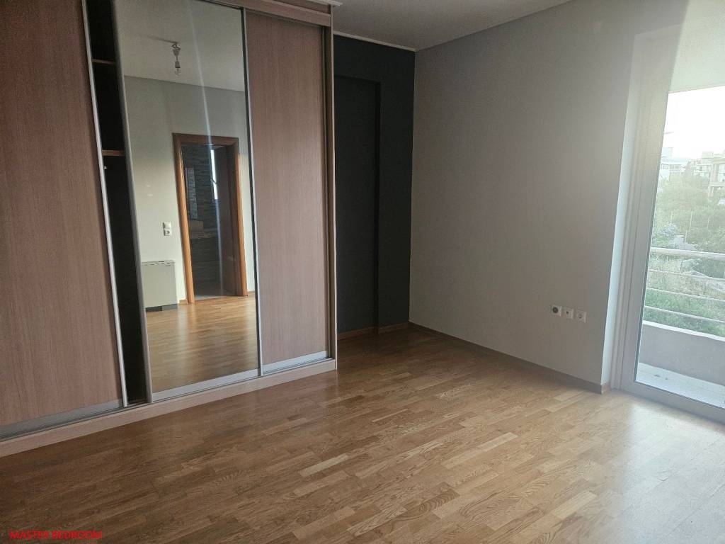A luxurious, newly refurbished three-bedroom apartment nestled in Rafina on the second floor with an open-plan kitchen and a comfortable living room. It features two bathrooms (one located in the master bedroom) and a laundry space with storage facilities. On the ground floor, there is a spacious indoor parking space and a storage room.