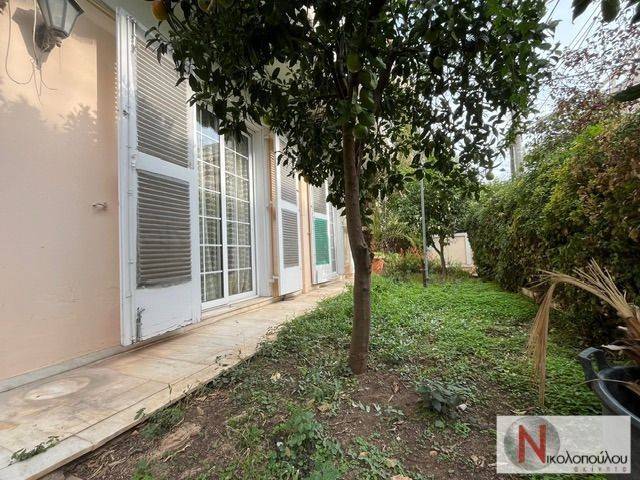 Ανεξάρτητο ισόγειο διπλοκατοικίας με δική του είσοδο, εποχής και αίγλης του '60, με ύψος ταβανιού 3,55 μ και γύψινο διάκοσμο, 185 τμ εντός οικοπέδου 595 τμ. Χώρος υποδοχής με τζάκι, τραπεζαρία, κουζίνα με άμεση πρόσβαση στον κήπο, 4 υπνοδωμάτια, μπάνιο, WC, αυτόνομη θέρμανση. Μεγάλος αποθηκευτικός χώρος. Προνομιακή τοποθεσία με απευθείας πρόσβαση σε κεντρικές αρτηρίες και παιδικές χαρές. Χρήζει ανακαίνισης.