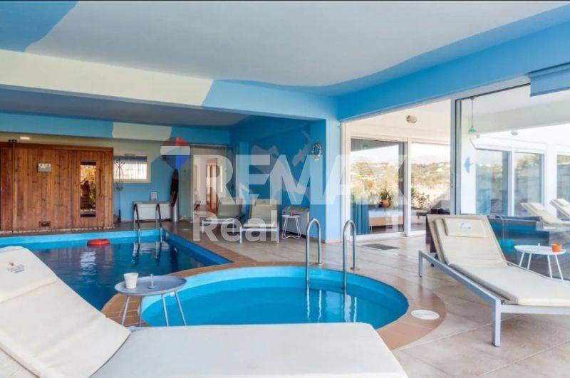 For sale is a splendid detached villa located in Gournes Temenos, Herakleion, Crete, boasting a total covered area of 220 square meters. This three-level autonomous villa sits on a spacious plot spanning 2200 square meters. Originally built in 2005, it underwent renovations in 2010, with regular upgrades and maintenance carried out every year since. The villa comprises five bedrooms, four bathrooms, a fireplace, an indoor heated swimming pool measuring 7m x 4m, a steam room, a sauna, a jacuzzi, a gym, a garden, large balconies, and private parking spaces. It comes fully equipped with amenities such as air conditioning, a solar water heater, a security door, storage room, aluminum frames, an alarm system, double glazing, among others. Additionally, it is tastefully furnished with modern decor. Operational throughout the year with remarkable performance, this property presents an excellent investment opportunity. Offering unparalleled privacy, it is conveniently situated within walking distance to the city, merely 5 km from the center and the coastal road of Heraklion.