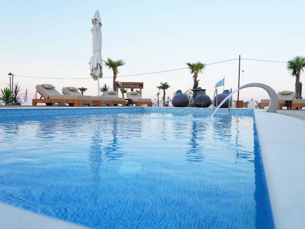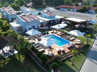 Complejo Turístico de Lujo con Beach Bar en Venta – Primera Línea de Mar – Leptokarya, Grecia Se vende complejo turístico de lujo frente al mar en Leptokarya Pieria. La propiedad se encuentra en una parcela de 2.000 m² y consta de 9 villas independientes de 25 m² cada una. 8 villas funcionan como alojamientos turísticos y 1 villa como café-bar / recepción. El complejo cuenta con piscina con jacuzzi, hidromasaje y cascada, jardín tropical con palmeras, pool bar y beach bar organizado con tumbonas en la playa. Negocio turístico en funcionamiento con potencial de ingresos de hasta 500.000 € anuales. Precio: 4.000.000 €