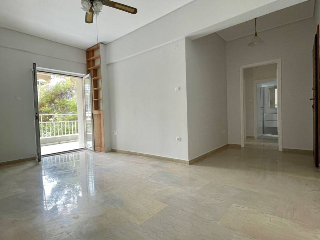 Agia Paraskevi - For rent renovated second floor apartment of 50 sq.m. with a large balcony overlooking the garden. It is a bright apartment of excellent layout, consisting of a living room, independent kitchen and a bedroom, all with access to the balcony. It also has a luxurious bathroom, hallway with large wardrobes, double glazed aluminium windows, security door and intercom. The apartment is renovated in 2023 and is located in a block of flats with elevator. Its location is excellent as it is close to the market, the subway Nomismatokopio and a bus stop.