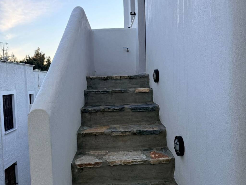 For rent a luxurious Newly Built Studio Apartment (built in 2024) of 35 sq.m. in the area of ​​Panagia Apeiranthos, Naxos with a living room, kitchen, bedroom and bathroom. It is fully furnished and has a 42-inch TV, 2 air conditioners for heating / cooling, refrigerator, cooking rings, coffee maker, toaster, washing machine, dryer, WIFI. Easy access from the entrance of the village.