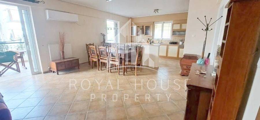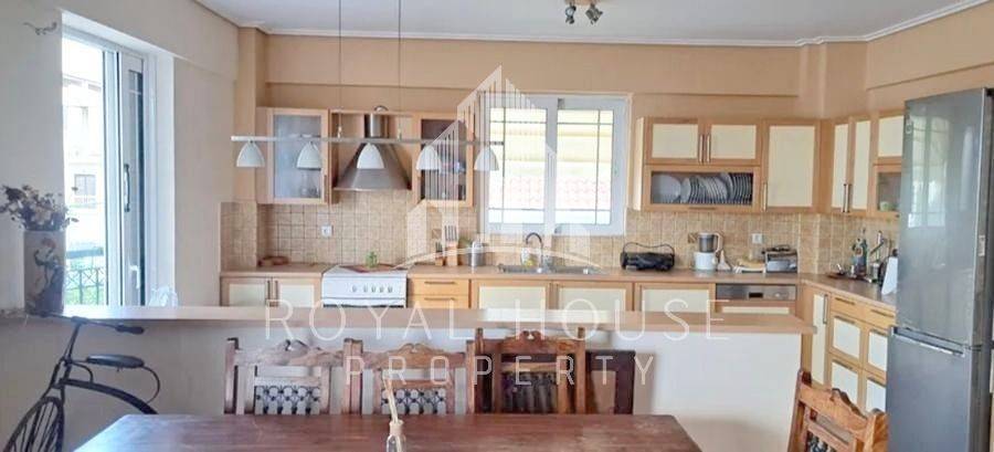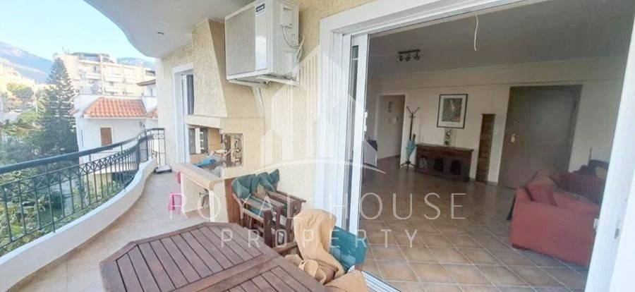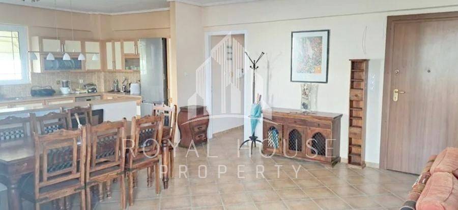 Elliniko, Ano Sourmena - Apartment 118sqm fully furnished, bedrooms 3, levels 1, 2nd, renovated, year built 2005, energy class D, living room, kitchen, bathroom, wc, heating type: autonomous (oil), air condition, parking covered, quiet, dual aspect apartment, luminous, frontage, painted, solar heater, fireplace, balconies, tents, elevator, loft storage, garden, aluminum frames, double glazed windows, ceramic tiles floors, secure door, video doorbell, barbeque, pets allowed, residential zone, special offer.