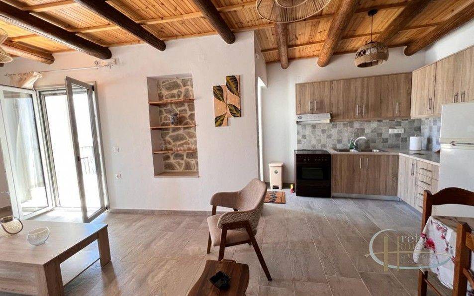 This traditional house in Melambes is a beautiful two-story stone building with a total area of 100 m², combining authentic Cretan architecture with modern amenities. On the ground floor there are two comfortable bedrooms, equipped with air conditioning, as well as an elegant bathroom. The natural stone and wooden beams create a warm, welcoming atmosphere that reflects the tradition of the place. Upstairs, there is a spacious and fully equipped kitchen-living room as well as a second bathroom. The terrace and balconies offer breathtaking views of the mountains, providing peace and contact with nature. There is also a practical laundry room for everyday needs. A house that combines tradition with functionality, in the village of Melambes.