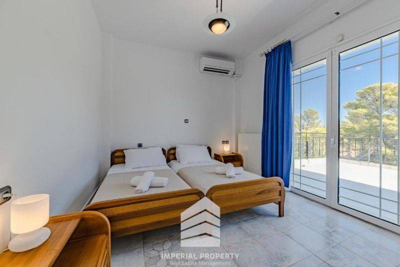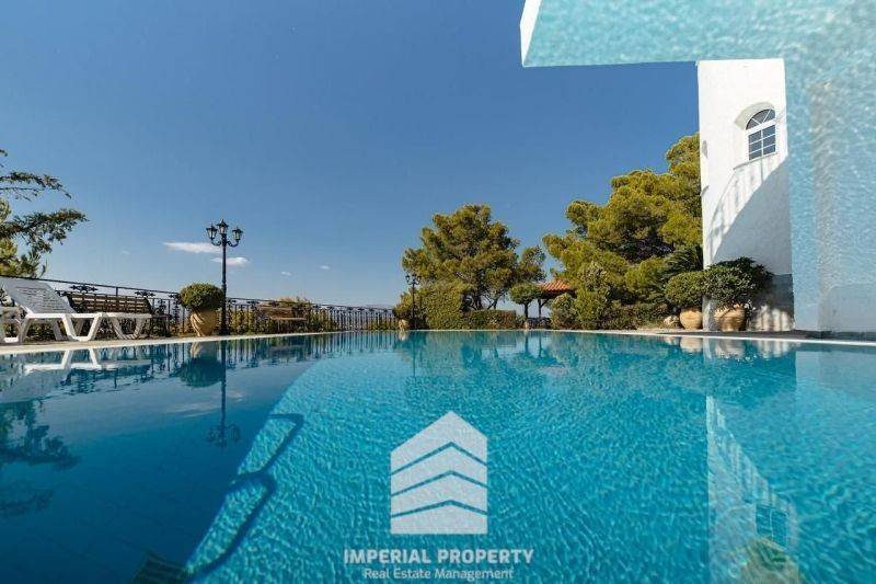 Lagonisi for rent an excellent luxurious furnished detached house - villa of 504 sq.m. with swimming pool in an amphitheatrical location with unlimited unobstructed mountain and sea views on a plot of 2,548 sq.m. The villa is distinguished for its architectural beauty but mainly for its comfortable and functional spaces. It consists of 270 sq.m. main spaces and 234 sq.m. auxiliary spaces. Five very comfortable bedrooms, five bathrooms, large kitchen with modern electrical appliances and living room with fireplace, aluminum with double glazing, AC,. The floors are with Dionysos marble and tiles. Large balconies with views. Closed parking, hydraulic elevator for five people, alarm, etc. In the wonderful paved garden there is a wonderful new technology 6X12 swimming pool with hydromassage, overflow, bar next to the pool, also here there is a beautiful barbecue with a gazebo and a marble bench, a 40 m3 concrete water tank and a three-phase pressurizer for watering the gardens. 50 olive trees. A chapel with icons and hagiographies. In the basement there are two 4M3 water tanks with a pressurizer for supplying water to the house. The detached house is suitable for quiet living but also for professional exploitation with very good performance. It is 2 km. from the beach, 15 km. from the International Airport El. Venizelos, 15 km. from Glyfada and 13 km. from the Hospital. 30 km. from the archaeological site of Sounio. Price 4.000.00€ Real Estate Agency Imperial property Tel. 6906385904