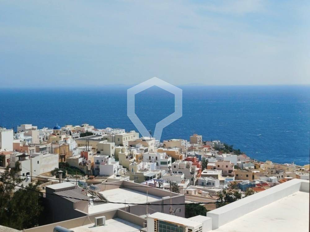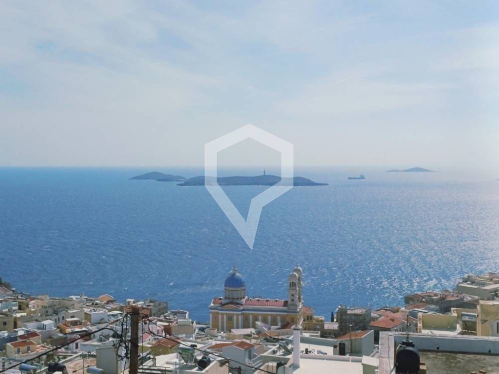 the property is developed over three levels and offers views of the sea and ermoupoli.