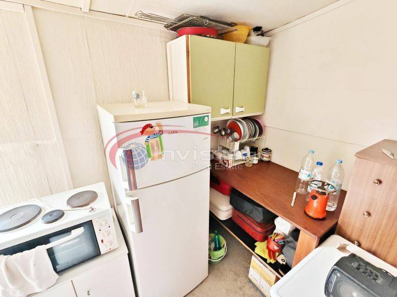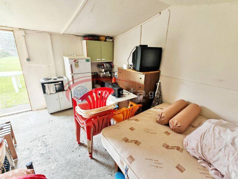 Διαθέτει ρεύμα και νερό, ένα εξωτερικό wc με ντουζιέρα ενω το κτισμα ειναι φτιαγμένο από ξύλο με με παράθυρα αλουμινίου και πωλειται με το εξοπλισμό που διαθέτει μέσα (ψυγείο, φούρνο ,κρεββάτι πλαστικά τραπέζια κ καρέκλες).