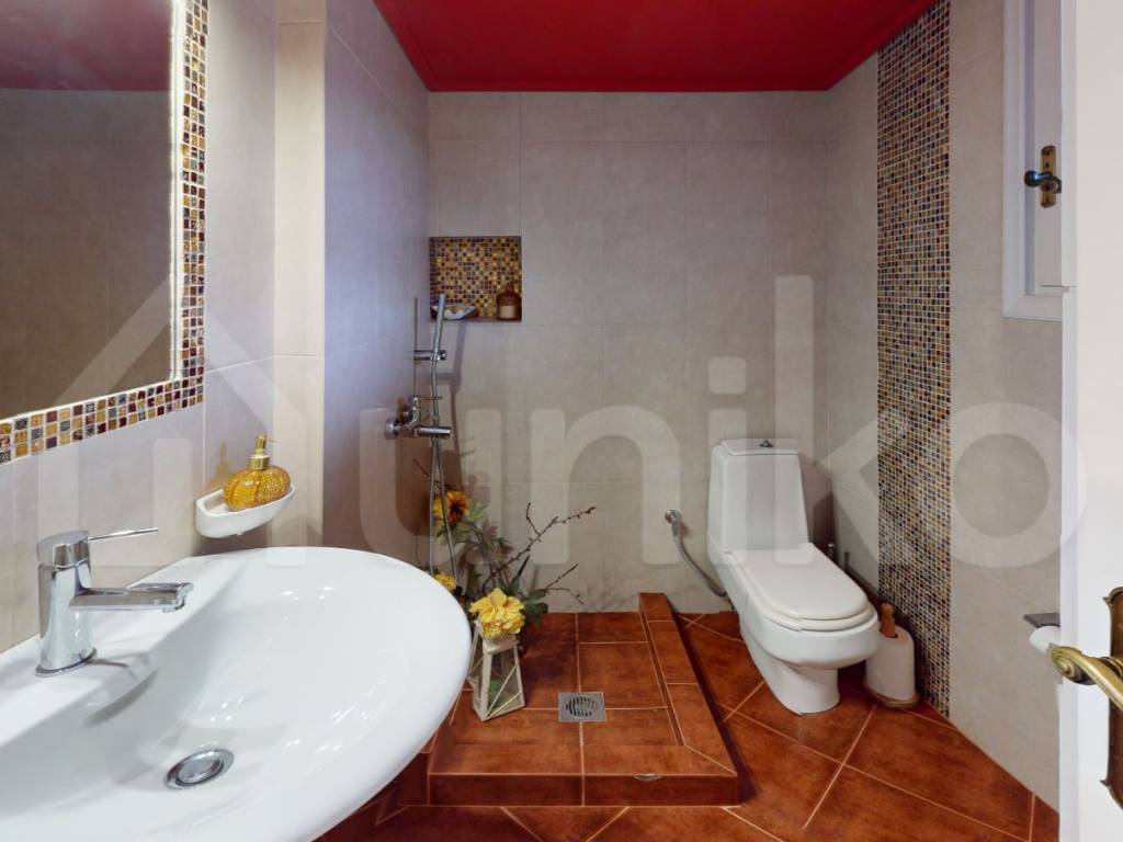 In Kalivia Thorikou, an independent house – villa with a total area of 300 sq.m. is available for sale, built on a private plot of 5,500 sq.m., in a peaceful area offering privacy and direct connection with nature. The house was originally constructed in 1980 and fully renovated in 2018, combining solid construction with modern comforts. The house is developed over two levels of 150 sq.m. each, offering spacious and functional living areas. It features two large living rooms with two fireplaces, two kitchens, four bedrooms, and four bathrooms, providing comfort and flexibility in the use of space. The house also includes autonomous oil heating, storage space, and parking areas for up to three vehicles. The outdoor area is particularly impressive, featuring a large swimming pool, dedicated changing rooms for the pool area, a gardener’s house, landscaped gardens, and a private water drilling system. The extensive 5,500 sq.m. plot offers ample space for parking, outdoor activities, and future developments. The property is located in a beautiful and quiet area of Kalivia, known for its natural surroundings and peaceful atmosphere, while still offering convenient access to coastal areas and Athens. The house represents a complete residential option in a natural and tranquil environment in the southern region of Attica. The property is available on Uniko, the new ultimate destination for buying and selling real estate in Greece, backed by the reliability of the National Bank of Greece. Learn more about this property below. Uniko 00006336