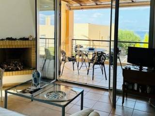 In the beautiful seaside area of Vagia on the island of Aegina, a luxurious independent maisonette of 110 sq.m. is available for sale, set within a lush residential complex built on a large plot of 4,641 sq.m. The property is located just a few steps from the sea, offering a rare opportunity for those seeking tranquility, privacy and direct access to the coastline. The residence is developed on two levels (ground floor and first floor) and features three comfortable bedrooms, two bathrooms, a fully equipped kitchen and a spacious living room with a fireplace that creates a warm and welcoming atmosphere. Large verandas offer beautiful sea views and provide the perfect setting for relaxation, outdoor dining and enjoying the Mediterranean lifestyle. The maisonette is bright and airy, with dual orientation, allowing natural light to flow throughout the day. It is offered fully furnished and equipped with built-in electrical appliances, aluminum window frames with double glazing, tiled flooring, security door and an internal staircase connecting the two levels. Additional features include autonomous oil heating, air conditioning units, storage room and one open parking space of approximately 13 sq.m. The property also benefits from a private outdoor use area of about 185 sq.m., surrounded by greenery within the beautifully maintained garden of the complex. The location is particularly privileged, as the property is situated only about 30 meters from the sea in a peaceful residential zone with easy access via an asphalt road. At the same time, it is approximately 13 km from the main town and port of Aegina Town, ensuring convenient access to shops, restaurants, cafés and all necessary services. With its excellent seaside position, sea views and comfortable living spaces, this property represents an ideal choice for a holiday home, permanent residence or investment opportunity on one of the most charming islands near Athens.