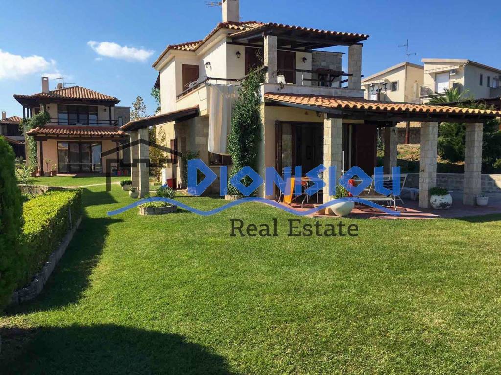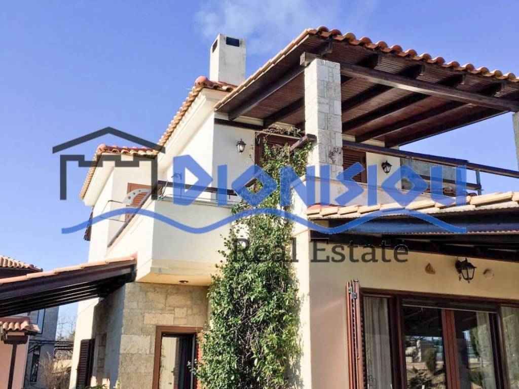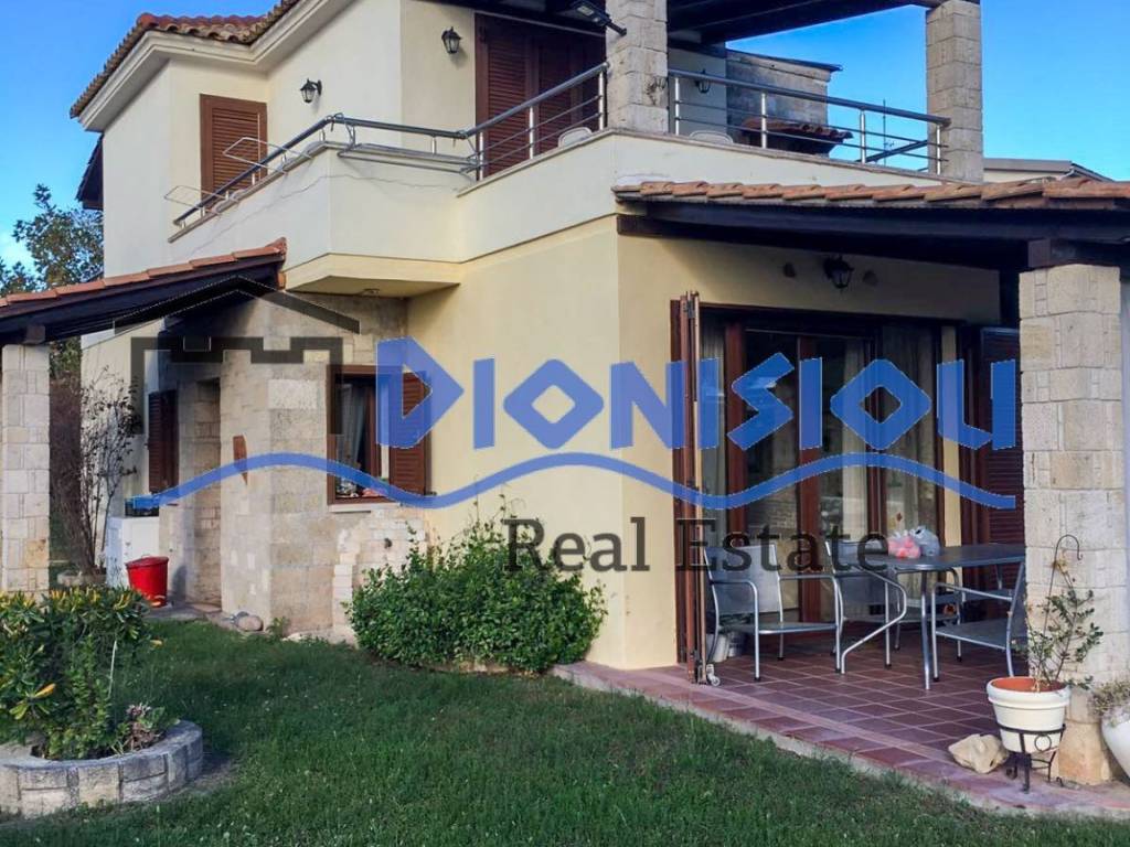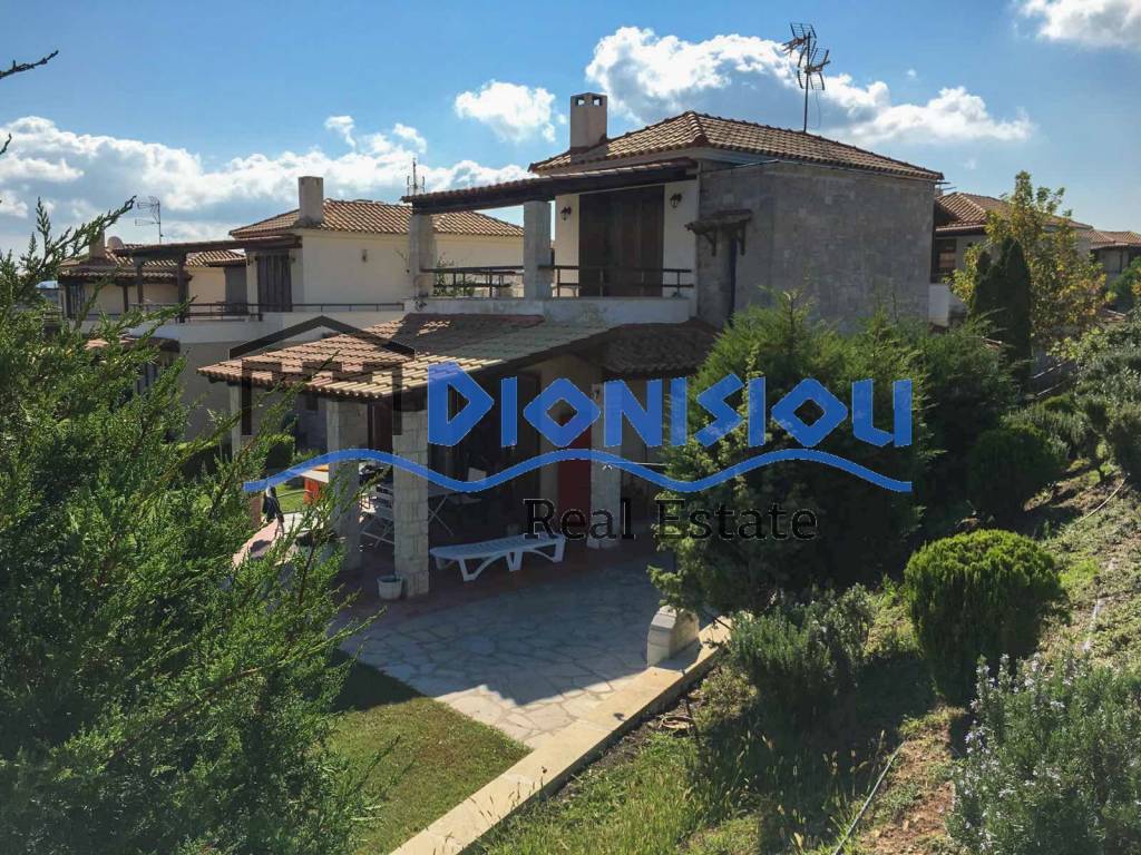 The villa is located in the surroundings of traditional Afytos village 300 meters from the beach. The villa is situated in the complex with a swimming pool. There is a private garden 500 sq. meters. There is direct access to the beach by elevator. There are 2 floors in the house. The ground floor consists of a living room with a fireplace and a kitchen, a bedroom and wc. The 1st floor consists of 2 bedrooms, a bathroom and 2 balconies. There is a fantastic sea view from the balconies. The villa is for sale with furniture and electrical appliances. Airconditions, individual heating system (diesel), security door, mosquito nets, a storage room , alarm, 2 parking places. This villa near Afytos (Kassandra, Halkidiki) is ideal for large families looking for a house with a swimming pool close to a traditional village. ID property: 2399 Dionisiou Real Estate 63200 Dionisiou Beach, Halkidiki Τ. +30 23730 23717 +30 6949487210 +306959591225 email: dionisiourealestate@gmail.com www.dionisiou-realestate.com www.dionisiou-realestate.ru The exact point on the map does not correspond to the actual address of the property Caution ! For the indication of the property it is necessary to show your ID and your Tax number according to Law 4072 / 11-4-2012 Government Sales Law 86A.