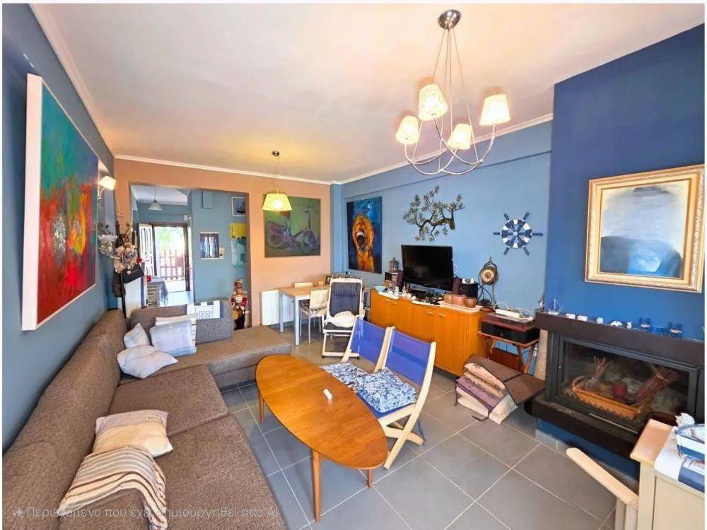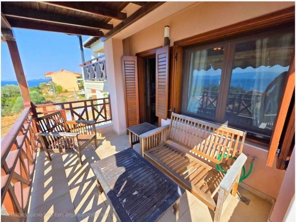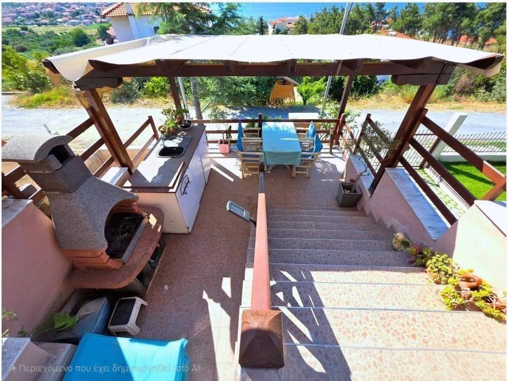 Nea Roda Halkidiki Furnished maisonette for sale 103 sq.m. This is a maisonette with a total area of 103 sq.m. (ground floor 55 sq.m. and 1st floor 48 sq.m.), in excellent condition and with a sea view. On the ground floor there is a kitchen, a living room with a fireplace, as well as an auxiliary WC. On the 1st floor there are 2 bedrooms, a bathroom and large storage spaces. The house also has a landscaped yard with an outdoor kitchen, BBQ. It has heating with an oil boiler, a fireplace and air conditioning. The distance from the sea is approximately 300 meters!