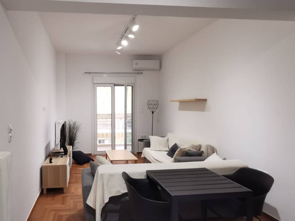 For Rent, a bright, fully renovated, and cross-ventilated 75 m² apartment on the 1st floor (front-facing) is available for rent. The property includes 2 bedrooms, a living room, a kitchen with modern furniture and full electrical appliances, a bathroom, and balcony access. It is delivered fully furnished and move-in ready, featuring comfortable and functional spaces with a contemporary aesthetic. The 2024 renovation has transformed the apartment into a modern and refreshed living space, featuring: - Hardwood and tile flooring - Security door - Aluminium double-glazed windows - Awnings and insect screens These upgrades ensure comfort, soundproofing, and energy efficiency. Heating & Cooling: - Central oil heating - Inverter air conditioning (high energy class) Energy Class: Z (fully renovated interior, 2024) Ideal for tenants seeking a quiet neighbourhood with easy access to shops and public transport. Distance to the sea and the nearest tram stop is approximately 2 km. Rent: €840/month Security Deposit: 3 months’ rent (€2,520)