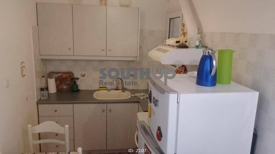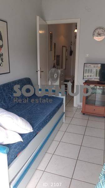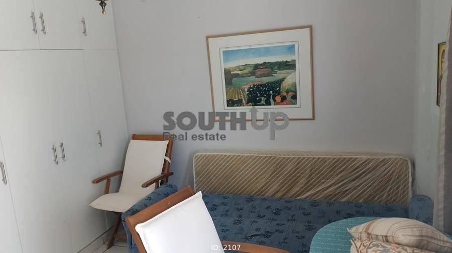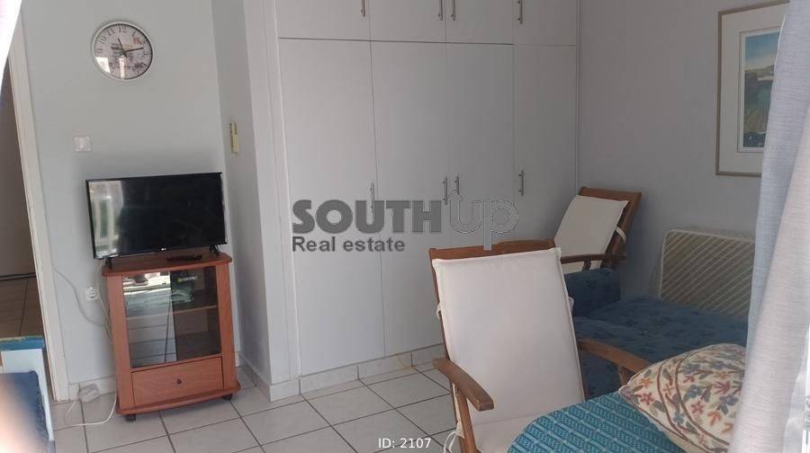 Saronida - Flatlet 33sqm fully furnished, bedroom, 1st, good condition, year built 1970, energy class G, living room, kitchen, bathroom, air condition, parking ground floor, dual aspect apartment, luminous, sea view, frontage, electric roller shutters, balconies, tents, aluminum frames, double glazed windows, door screen, ceramic tiles floors, secure door, residential zone, southern orientation, access from asphalt, close to sea (up to 1500m).