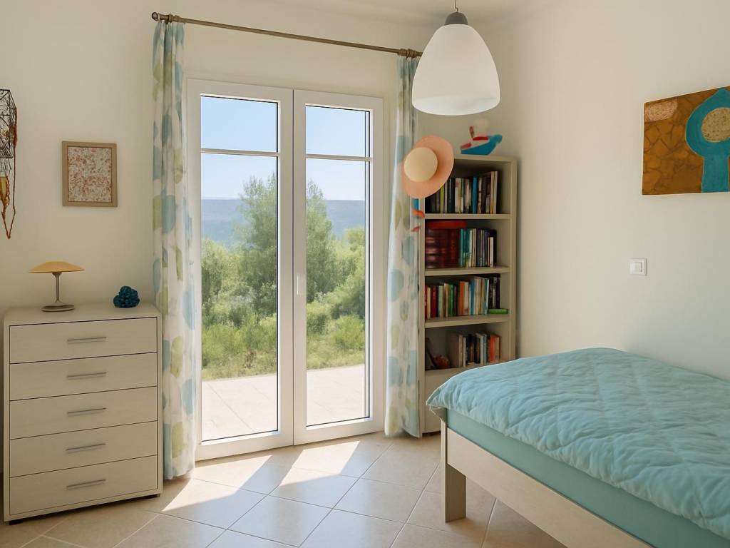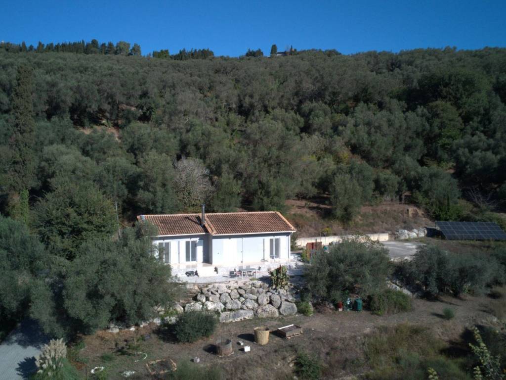 A unique modern home nestled in nature, ready to move in, with 100 m² of living space and three bedrooms. Built in 2010 with high-quality insulated timber frame construction, it ensures a comfortable indoor climate year-round. Large double-glazed windows with integrated fly screens and metal shutters bring in natural light while providing security.The property is highly self-sufficient, featuring a powerful 8.5 kWp photovoltaic system with 16 kWh battery storage, ensuring electricity even during outages, and a modern air-to-air heat pump provides efficient heating and cooling. Water is supplied via large storage tanks and a multi-stage filtration system, with a reverse osmosis unit for ultra-pure drinking water. Security and technology are fully integrated with an alarm system, cameras, surge and lightning protection, and optional Starlink satellite internet. Set on a 2,854 m² plot in the picturesque “Walnut Valley,” the property blends landscaped areas with wild nature. Fruit trees, olive trees, raised vegetable beds, and a small stream create a serene environment. There’s ample space for a pool, parking for three cars, and an electric car charger powered by the home’s solar system. A building permit for an additional 100 m² has been approved, allowing the new owner to expand this exceptional home while enjoying privacy and the beauty of its natural surroundings. Conveniently located near the village of Pagi and just 2 km from the beach of Agios Georgios, the property is approximately 35 km from Corfu Town and the airport.