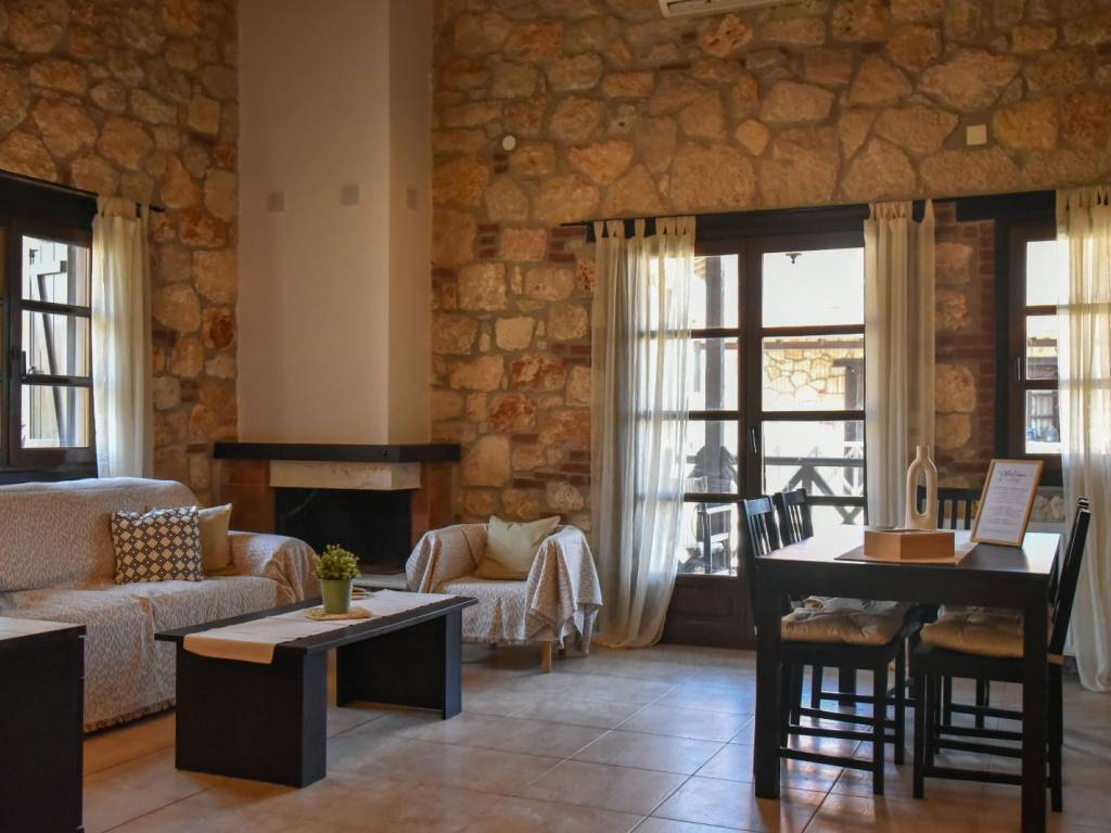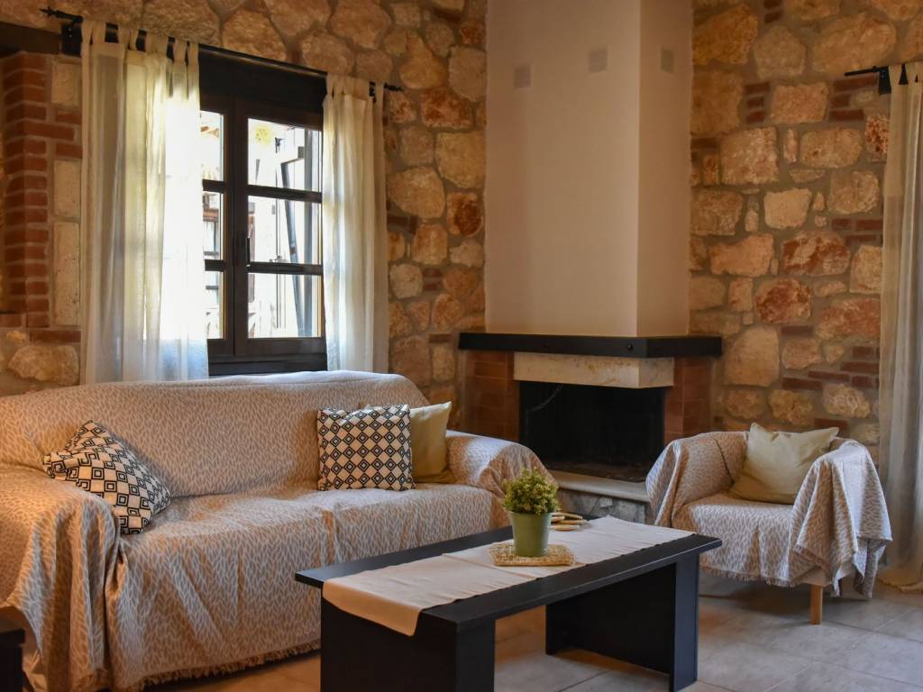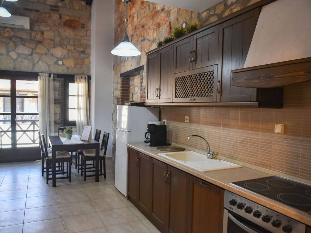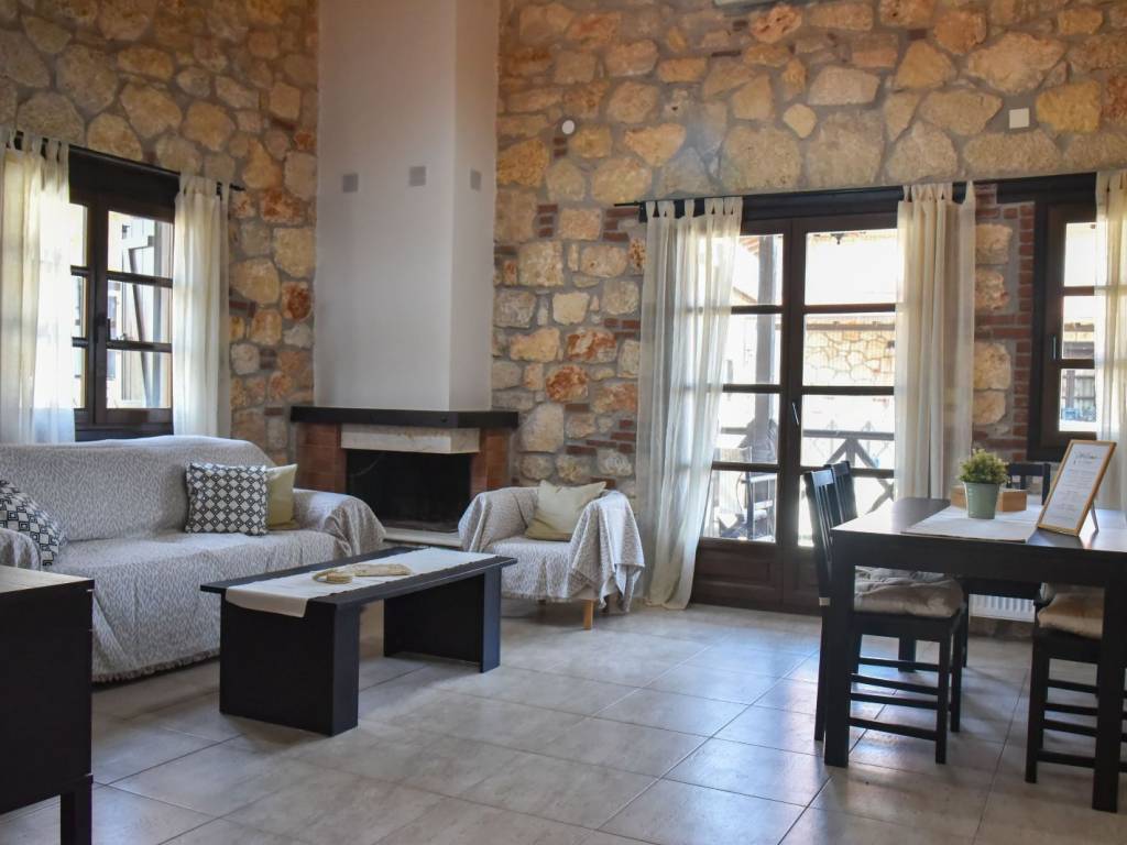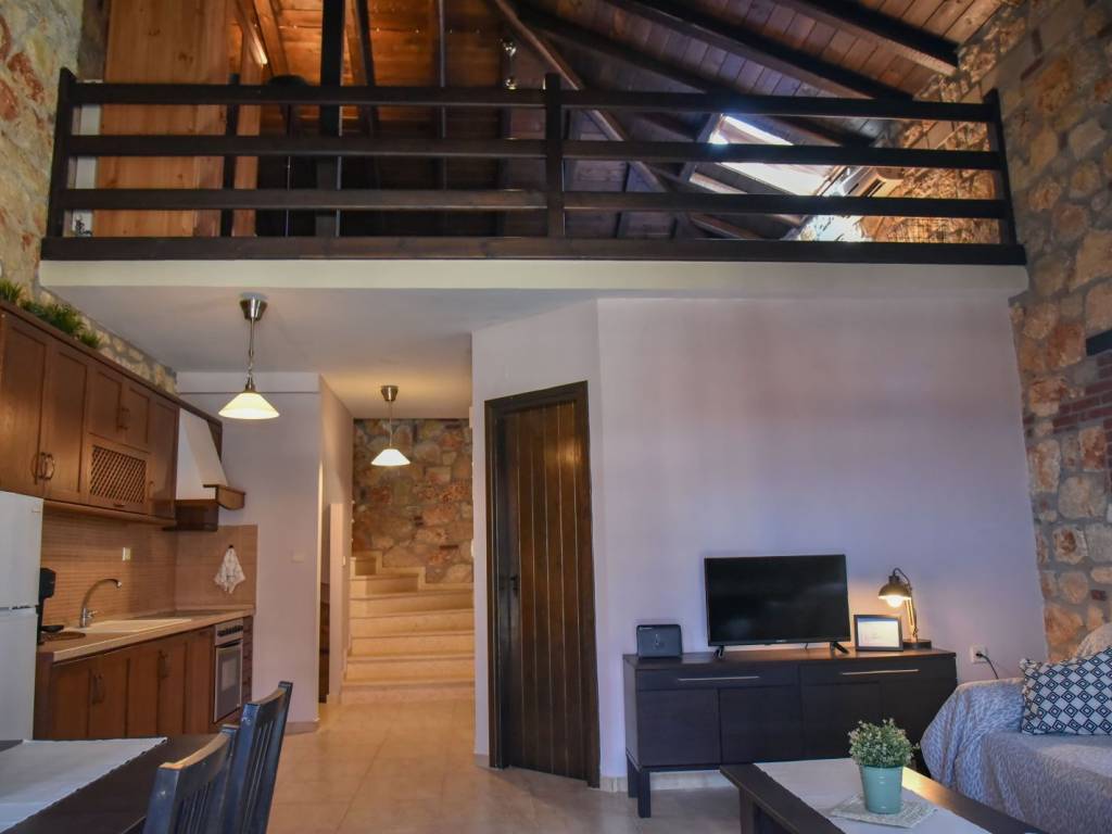 for rent for the season june, july, august, september in psakoudia, 72sqm apartment, loft type, 2nd floor, luxurious construction and excellent aesthetics, within a well-made residential estate in a quiet area. it is about 600m from the market, the restaurants and cafes of the area and 400m from the beach. the house is fully equipped. it consists of a large living room, a bedroom with a double bed, a bathroom with shower and washing machine as well as an additional room on the upper level (loft) with a double bed. it has stone covering internally and externally, two air conditioners, a fireplace, individual heating as well as a comfortable balcony of approximately 8sqm with a view. the apartment is in excellent functional and appearance condition. it is a first class choice as a country house for holidays. price 6000 for the whole season contact tel.+30 6970800397.