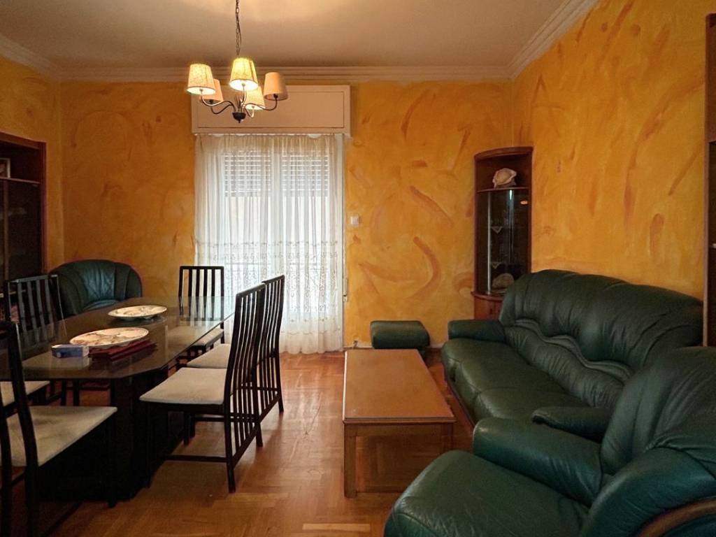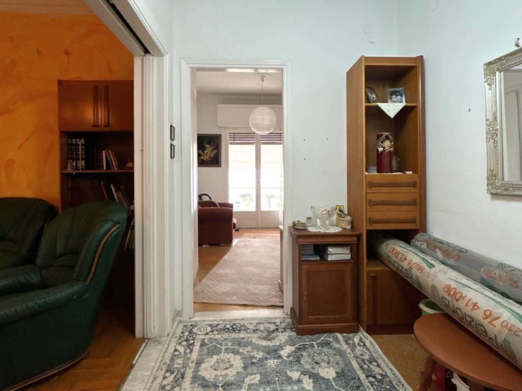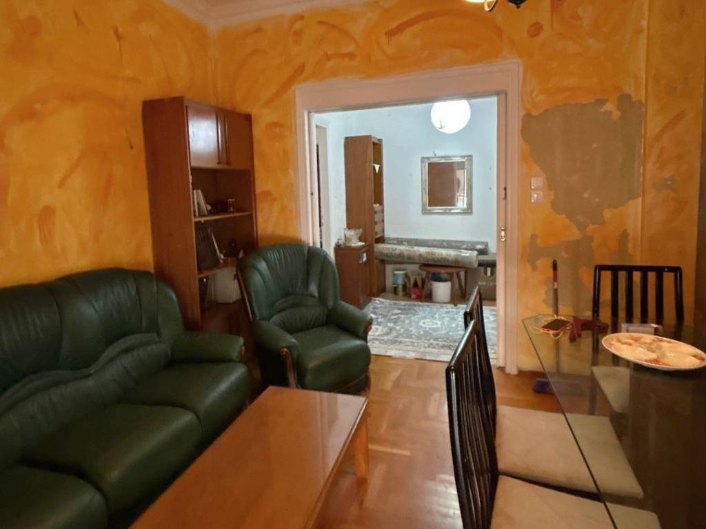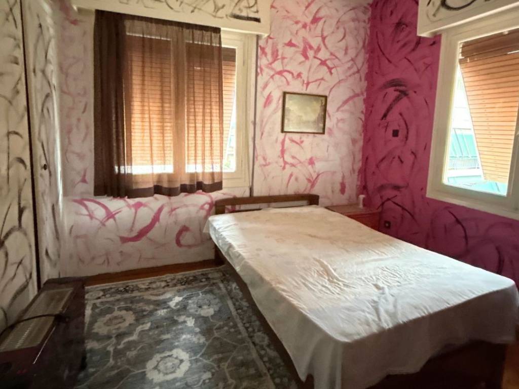Very bright second-floor apartment, 80 sq.m., in a quiet neighborhood of Vyronas. It is a spacious, front-facing apartment in a very privileged location. It features 2 bedrooms, 1 bathroom, 1 W.C., kitchen, office, hall, and a living room with dining area in one large open-plan space. It has two balconies, one spacious front-facing and one auxiliary towards the inner courtyard, offering light and functionality to the space. Additionally, it has exclusive use of the building’s yard. The building does not have an elevator. The location of the apartment combines the benefits of the city, as it is close to shops, public transport, and anything you may need in your daily life.