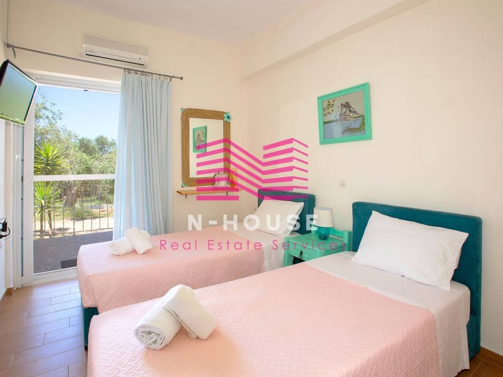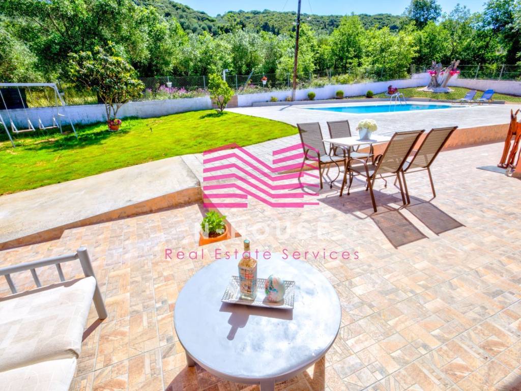 Villa for sale – in Corfu Available for sale a fully renovated detached house of total area 231 sq.m., with private swimming pool, on a lush green plot of area 3,035 sq.m. in the area of ​​Perivolia Episkopianos (Moraitika). The property is located in a strategic location, exactly in the middle of the distance Corfu – Lefkimmi, offering absolute privacy and relaxation. Detailed Description of Spaces (Total area 231 sq m): The property consists of two independent, fully equipped residences and auxiliary areas: • Main Residence (120 sq m): Consists of a large living room with fireplace, dining room, independent and functional kitchen, three bedrooms, one bathroom and one w/c • Second residence - Independent Studio (28 sq m): A comfortable single space with kitchen and its own bathroom, ideal for a guest house or staff. . • Storage Spaces: It has three external storage rooms with a total area of ​​25 sq m for complete organization of equipment. Property Features: • Outdoor Spaces: The outdoor area is dominated by the impressive private swimming pool, which is the center of reference of the property, offering an environment of unparalleled aesthetics and discreet luxury. In addition, it has covered verandas of 52 sq.m. and a picturesque private chapel within the estate, giving a unique character to the property. *Equipment & Amenities: The property is available fully furnished and fully equipped with all electrical appliances and household utensils (turn-key) as well as the necessary equipment and pool furniture. In terms of energy, it has air conditioning for cooling - heating (A/C) in all areas and a solar water heater. *Points of Interest: Beaches: Moraitika & Messonghi (5'), Halikounas (15'). Sights: Achilleion Palace (15'), Corfu Town & Airport (20'). Investment Opportunity: The location of the property offers the perfect balance between isolation and easy access to the sea, market, city, airport and the southern port of the island. It is an ideal choice for tourist exploitation (short-term rental with immediate return) or for use as a luxurious holiday home and permanent family residence. The above features give the property high investment interest. Price: 650000€ Property code: 0165 The description, features and visual material are published by the company: N-HOUSE REAL ESTATE Agiou Ioanni Pratsika 165A, Patras 26332, Patras (Achaia) ☎ Contact phone: (+30) 2612615160 -The above-mentioned information regarding the property arises following a declaration by its owner. -The registered address is indicative and does not correspond to the exact location of the property. -The exact location of the property is given only when indicated by the broker. -During the process of indicating the property by the broker, according to LAW YP' NO. 4072 GAZETTE A'86/11.4.2012, it is necessary to show your police ID to the broker as well as your VAT number. Mail us to coordinate your appointment!