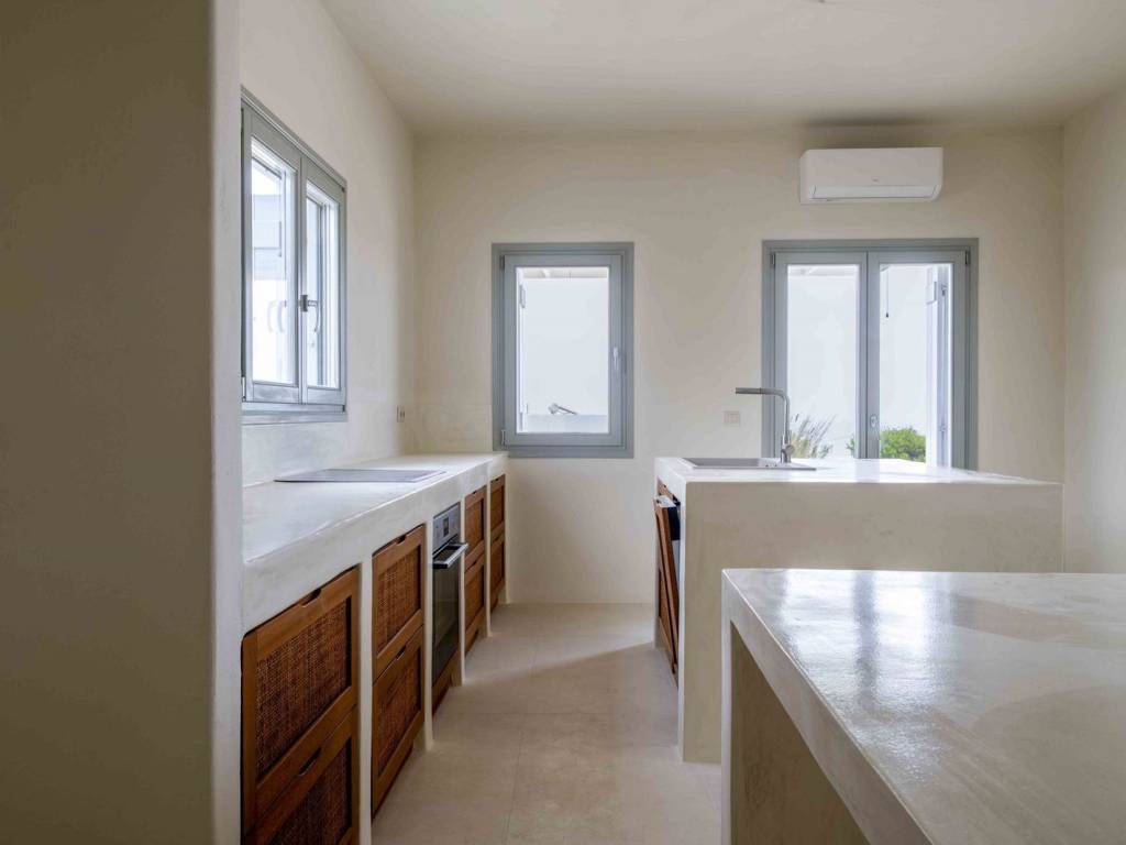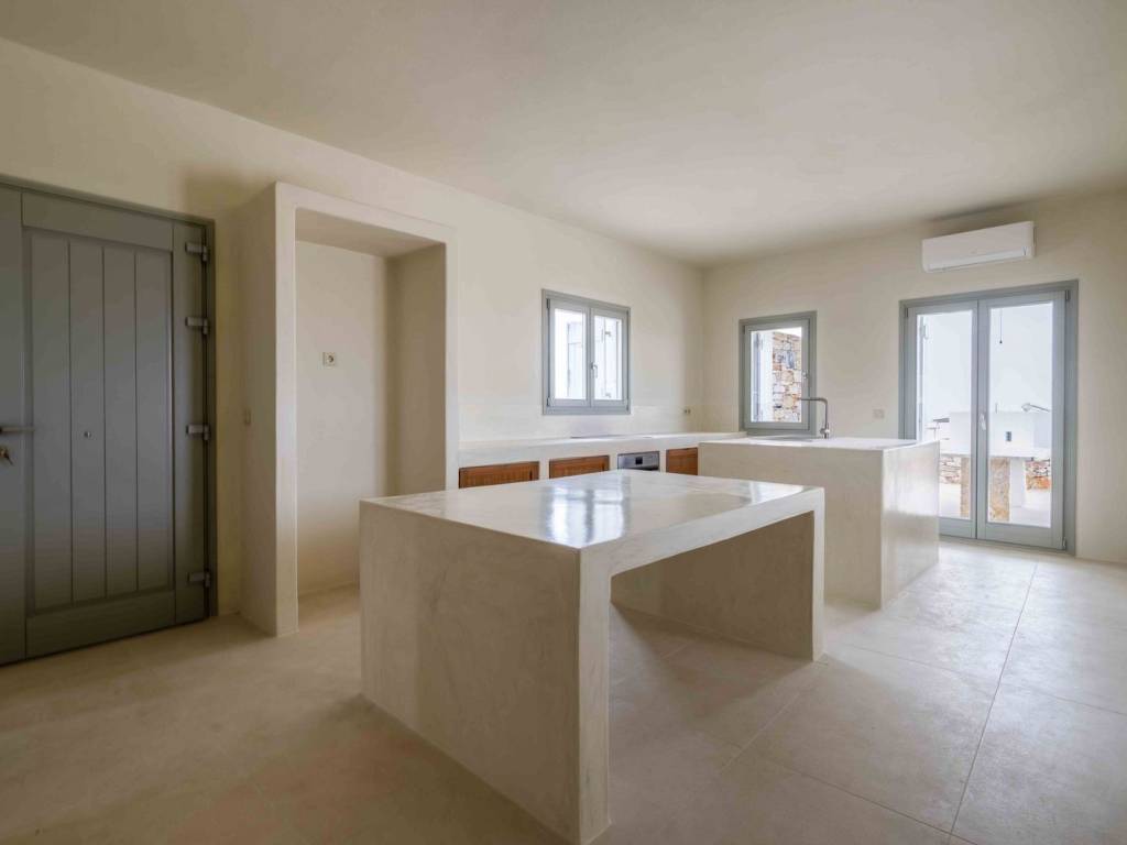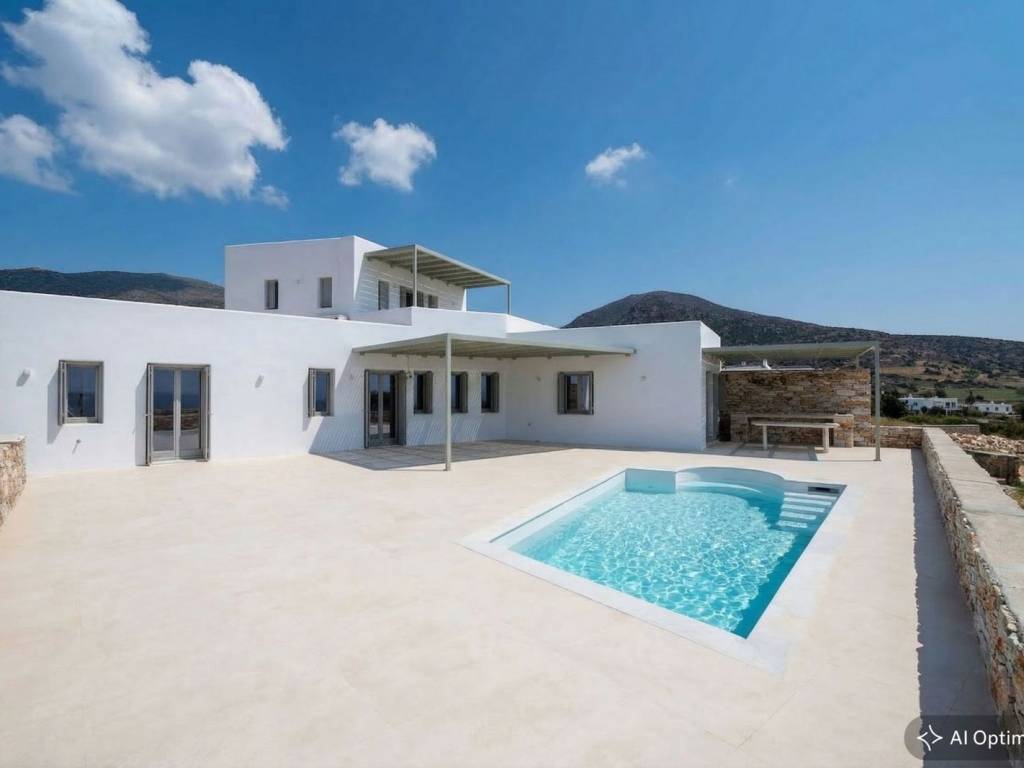 Set on a scenic hillside in Aspro Chorio, with open views towards Naxos and Dryonisi, this villa of modern Cycladic architecture offers a sense of understated elegance and relaxed island living. Located just a short distance from the sandy beach of Lolantonis and the charming fishing village of Drios, the property enjoys a balanced setting that combines privacy with easy access to beaches and local dining. The villa offers a total living area of 170 sq.m. on a plot of 1,092 sq.m. (with exclusive use of 546 sq.m.), thoughtfully designed to ensure comfort and functionality. It comprises three spacious bedrooms, two on the ground floor and one on the upper level, all with en-suite bathrooms, plus a guest WC. The open-plan kitchen, dining, and living area is bright and inviting, creating a comfortable space for both everyday living and entertaining. The outdoor areas are designed for effortless summer living, featuring a private swimming pool (25 sq.m.), an outdoor kitchen, and a BBQ area, ideal for enjoying the Cycladic climate and sunset views. The property has been constructed using high-quality, environmentally friendly materials and holds an A++ energy efficiency rating, ensuring year-round comfort and energy efficiency. An appealing option both as a private holiday home and as an investment property, given the growing demand for quality accommodation in the wider Drios–Aspro Chorio area. (The property is offered unfurnished. Furniture shown in the images has been digitally added for illustrative purposes.) Location: Paros is located in the central Aegean Sea, it belongs to the Cyclades complex and is the third largest island in Greece. Unique Features: Paros is one of the top holiday destinations for Greeks and foreign visitors as it is distinguished for its cosmopolitan character and the intense lifestyle that it offers to its visitors. At the same time, the island offers a variety of organized or quiet beaches with clear blue waters and also has world famous beaches for kitesurfing and windsurfing. Every visitor has the opportunity to explore the most picturesque spots of the island, Naoussa and Parikia, enjoying a wide choice of cafes, restaurants and bars. Accessibility: The island of Paros is accessible from the ports of Rafina and Piraeus, ferries depart several times throughout the day and during the summer season. The island of Paros can be reached by plane as the island has an Airport with several flights operating mainly during the summer period when demand is high. Investment Opportunity: Buying property in Paros is a huge investment as the island is one of the top holiday destinations around the world, keeping its reputation high and attracting more and more investors.
