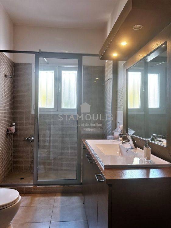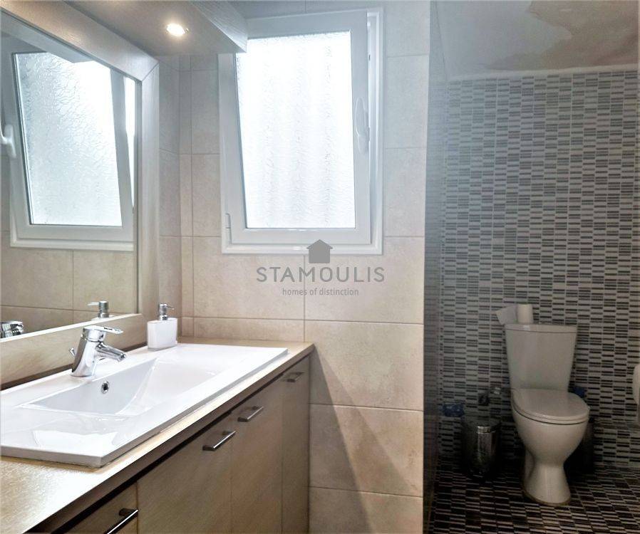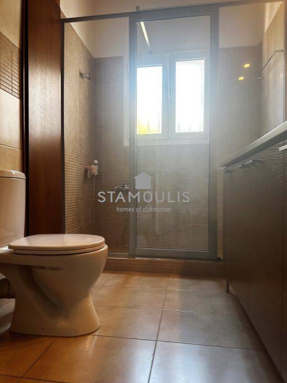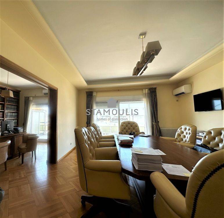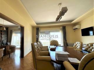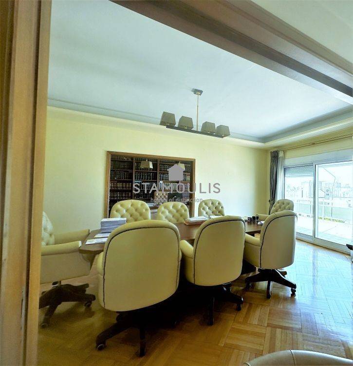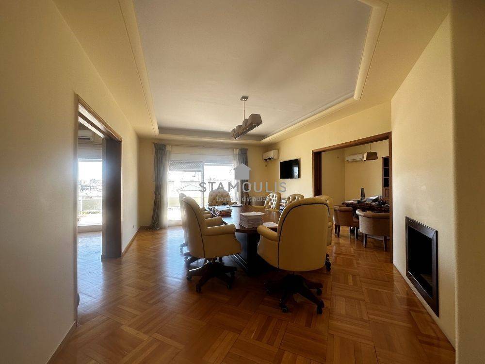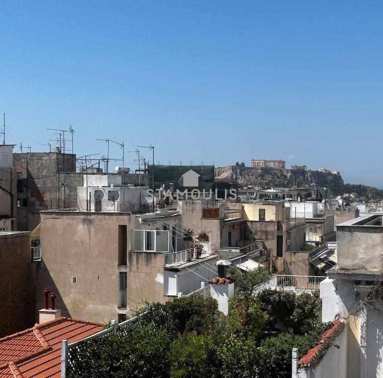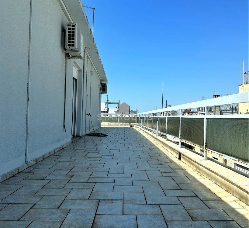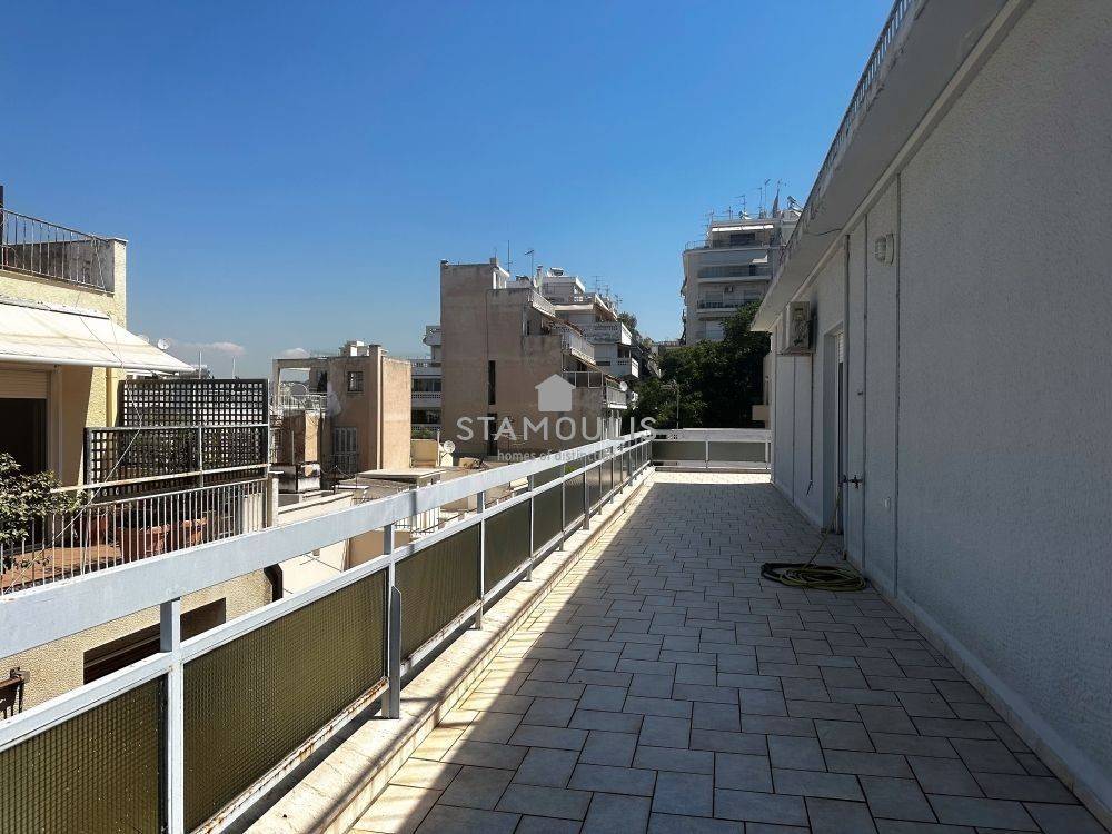 Penthouse renovated apartment of 180 sq.m, 6th floor, with a very large corner veranda with view of the Acropolis and through the property. It has 2 bedrooms, reception area with fireplace, bathroom, wc, independent kitchen, wood striped floors, security door, aluminum frames with double glazing and air condition.