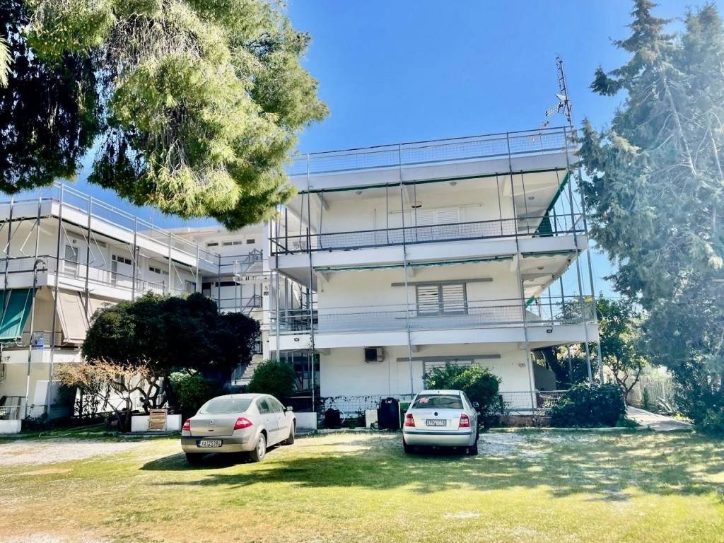 a 70s time capsule of a studio apartment with its own verandah overlooking the garden and the sea . the interior is featuring original danish furniture and fabricsfrom the same period. beige marble floors in the living space and bathroom. unique location: you cross the provate garden to get to the beach. outdoor parking within the gated plot of the building. within 3 minutes by foot you reach a big super market. 22 minute walk to the town of agioi theodoroi.
