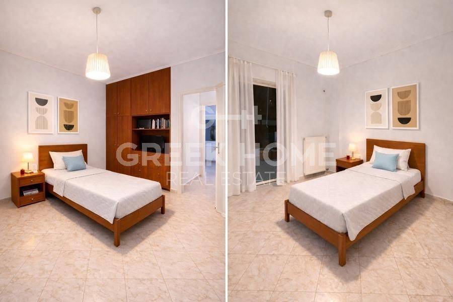 Perama (Attica - Piraeus Suburbs), Centre - Apartment 95sqm bedrooms 3, 3rd, excellent condition, year built 2004, energy class C, living room, kitchen, bathroom, wc, heating type: autonomous (oil), air condition, parking open space, dual aspect apartment, luminous, sea view, solar heater, fireplace, balconies, tents, elevator, built in appliances, aluminum frames, double glazed windows, door screen, ceramic tiles floors, office, secure door, alarm, video doorbell, close to bus stop (up to 100m), close to super market (up to 500m), close to square (up to 1000m).