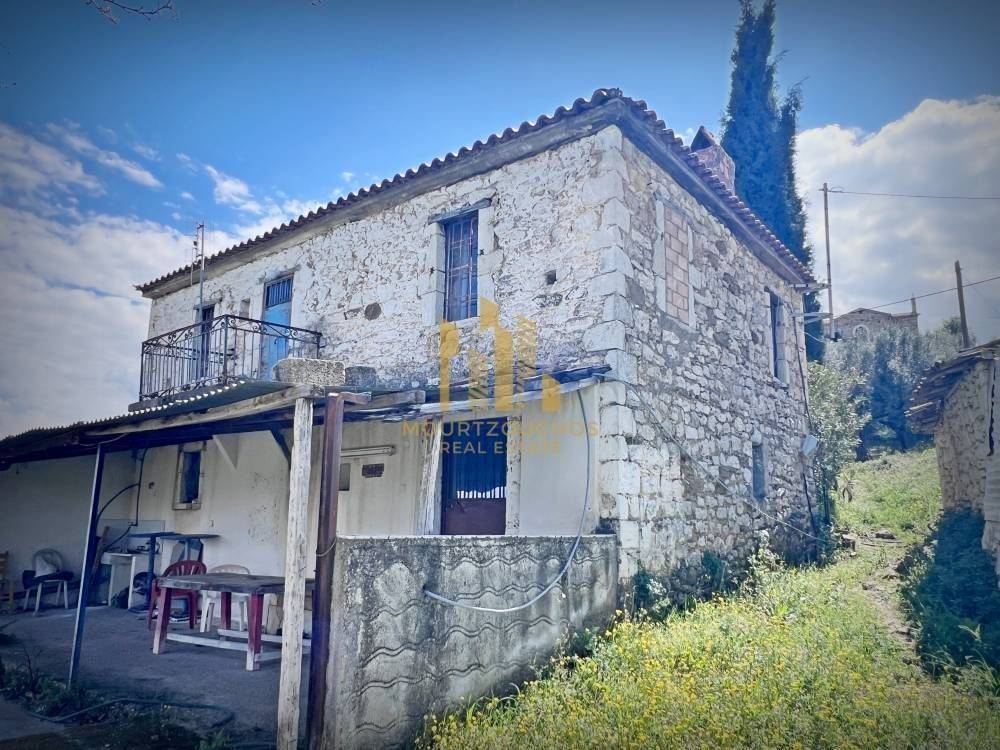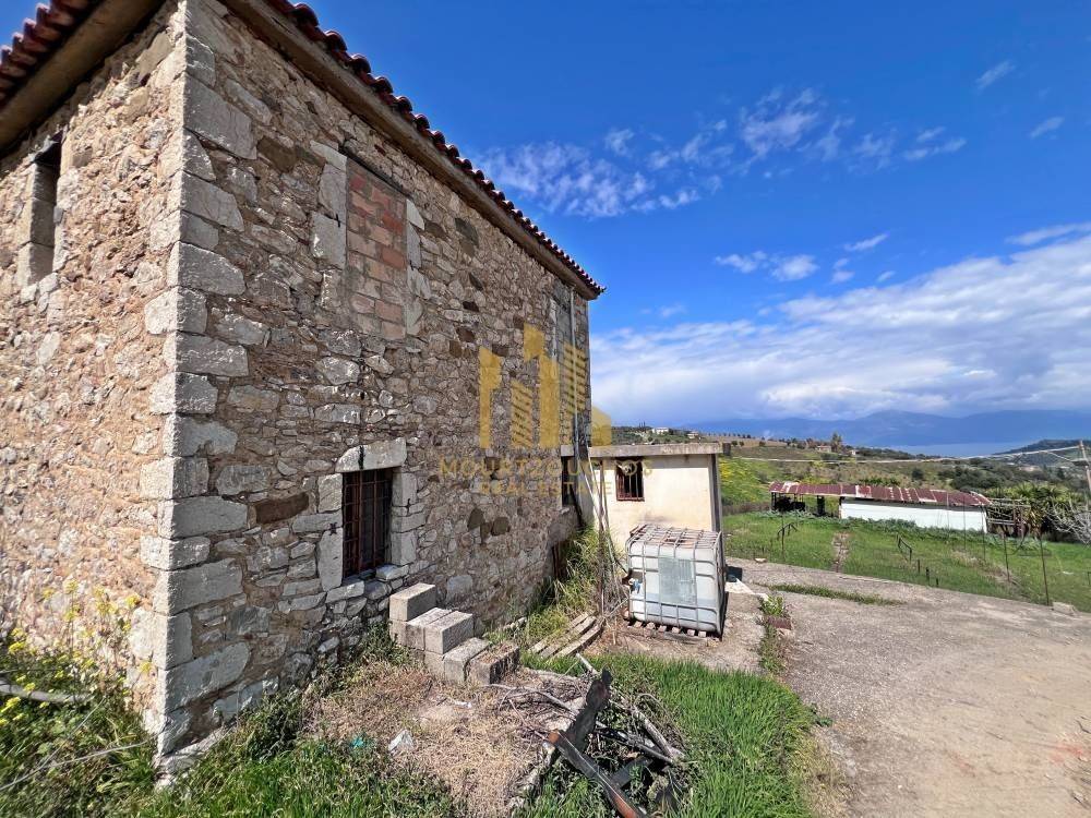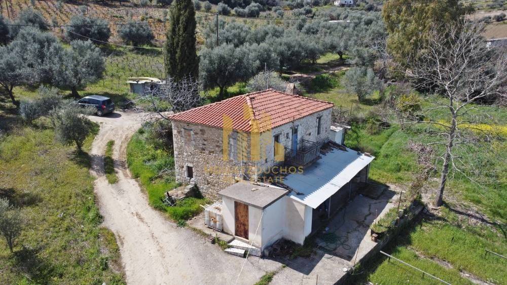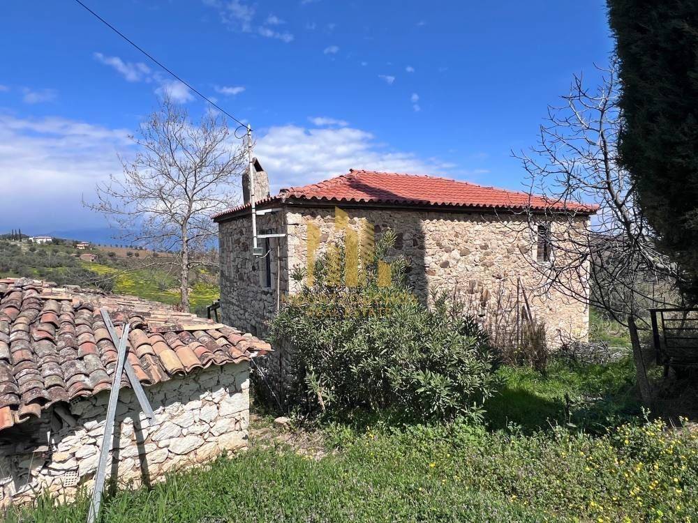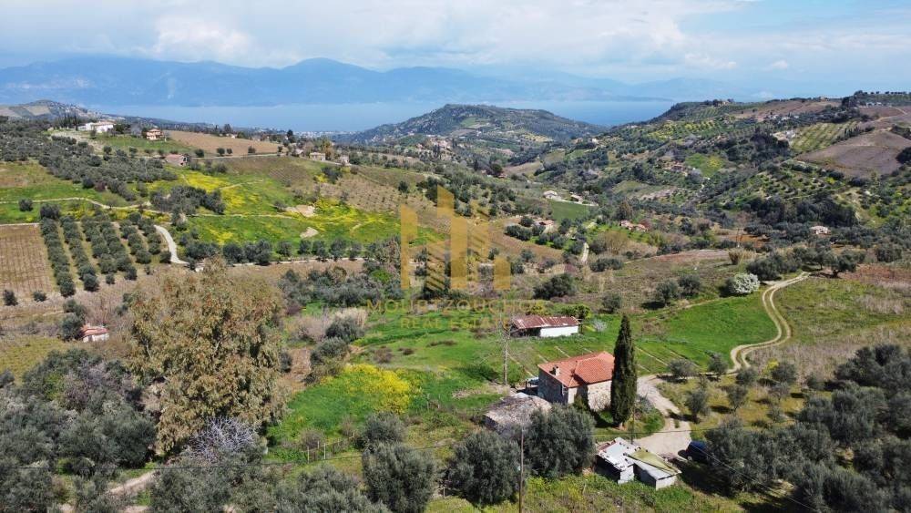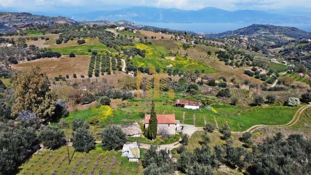 Detached traditional stone house of 110 sq.m. for sale in Mertidi, Aigialeia, set on an 8,000 sq.m. two-level plot in a magical location surrounded by nature, offering absolute tranquility and privacy. The property enjoys stunning sea views and a beautiful natural landscape, with rolling hills and scenery that strongly resemble the charm of Tuscany.