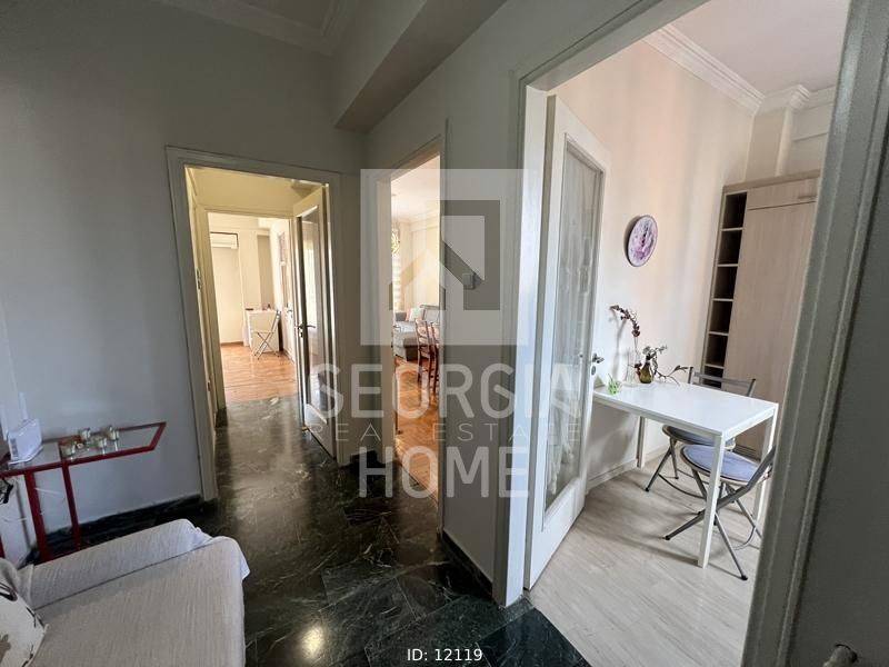 Patra, Centre - Apartment 70sqm fully furnished, bedroom, levels 1, 4th, very good condition, year built 1973, renovation year 2020, energy class D, living room, hall, kitchen, bathroom, heating type: central (oil), air condition, a/c type splits, quiet, dual aspect apartment, luminous, painted, boiler, balconies, elevator, loft storage, built in appliances, aluminum frames, double glazed windows, wood & marble floors, secure door, internet, residential zone, east-southern orientation, access from pedestrian street, close to banks (up to 200m), close to square (up to 200m), close to university/college (up to 5000m), close to bus stop (up to 100m), close to super market (up to 500m), close to entertainment (up to 500m).