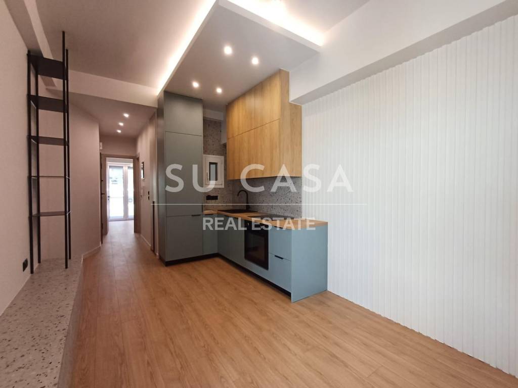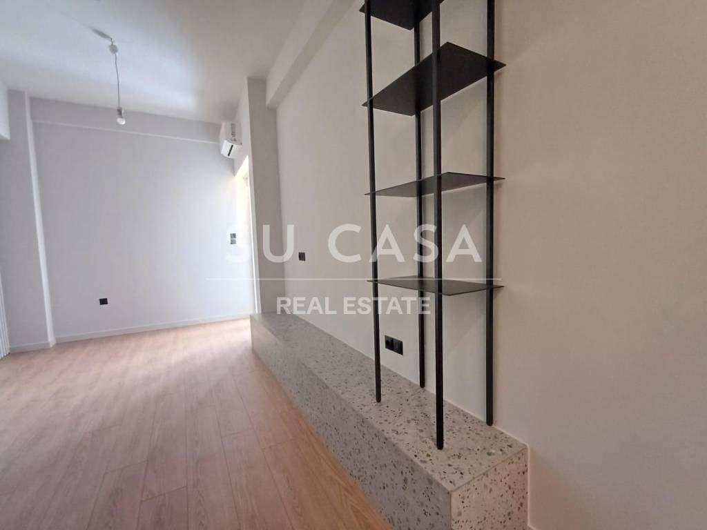GYZI, Apartment 37 sq.m., elevated groundfloor with an open plan kitchen- living room, separate bedroom and one bathroom. The apartment was renovated in 2025 and will be delivered with all electrical appliances. It is located in a very good location in Gyzi, close to the metro station ''AMPELOKIPOI''.