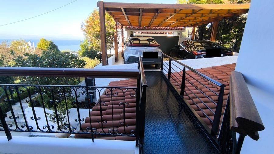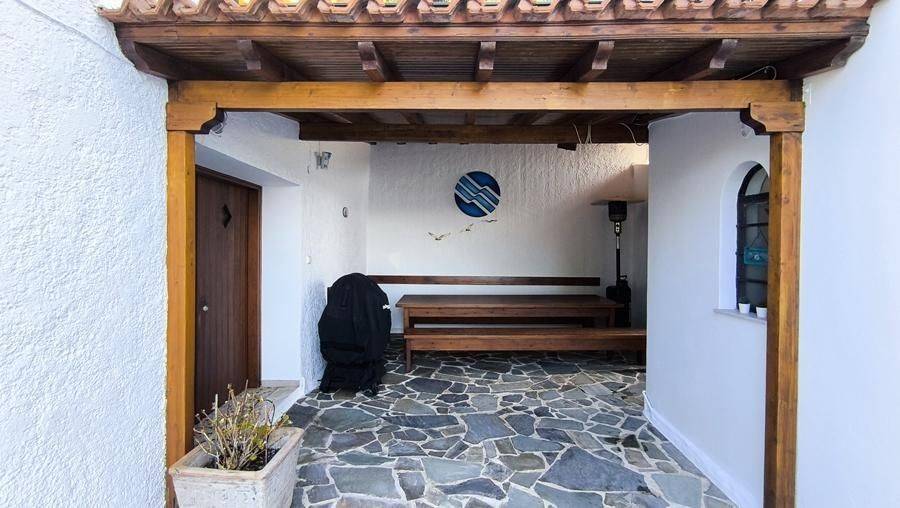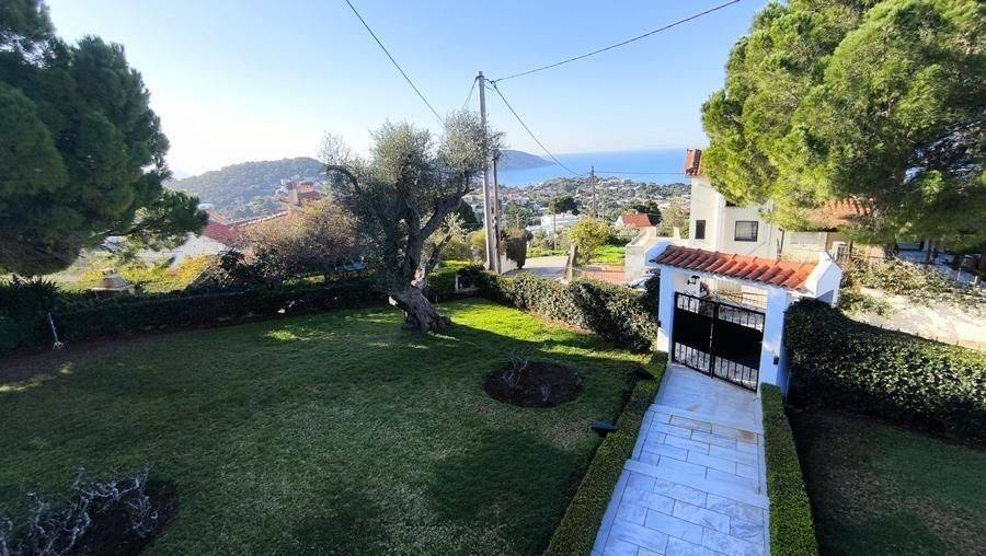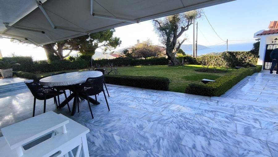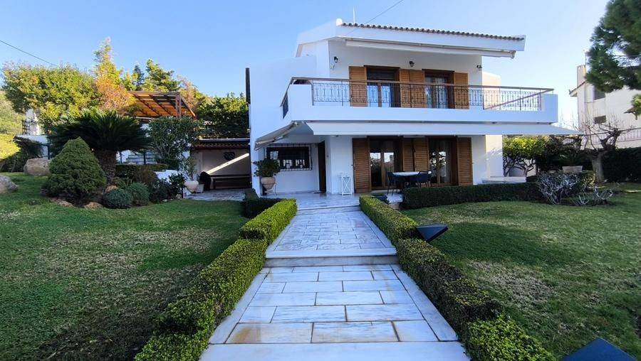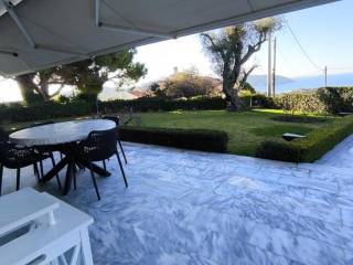 Anavyssos, Mavro Lithari - Detached House 219sqm plot 740sqm, bedrooms 4, levels 3, ground floor (85sqm, living room, dinning room, kitchen, wc) - 1st (57sqm, 2 bedrooms, bathroom) - attic (57sqm, 1 bedrooms, playroom), year built 1994, energy class C, living room, 2 kitchens, 2 bathrooms, wc, heating type: autonomous (oil), air condition, parking covered,2, quiet, dual aspect apartment, luminous, sea view, storage space 10sqm, boiler, fireplace, balconies, large balconies, tents, garden, garden 650sqm, built in appliances, aluminum frames, double glazed windows, door screen, wood & marble floors, three phase electricity, secure door, alarm, video doorbell, luxurious, internal staircase, barbeque, playroom, guest house, service room, internet, laundry room, within city plan, residential zone, southern orientation, access from asphalt, close to sea (up to 500m), close to market (up to 2000m).