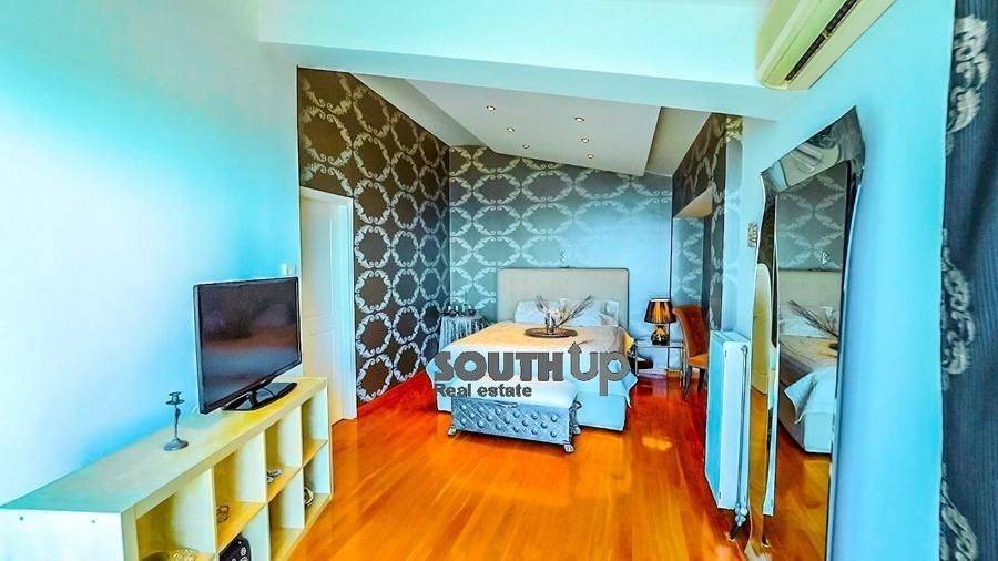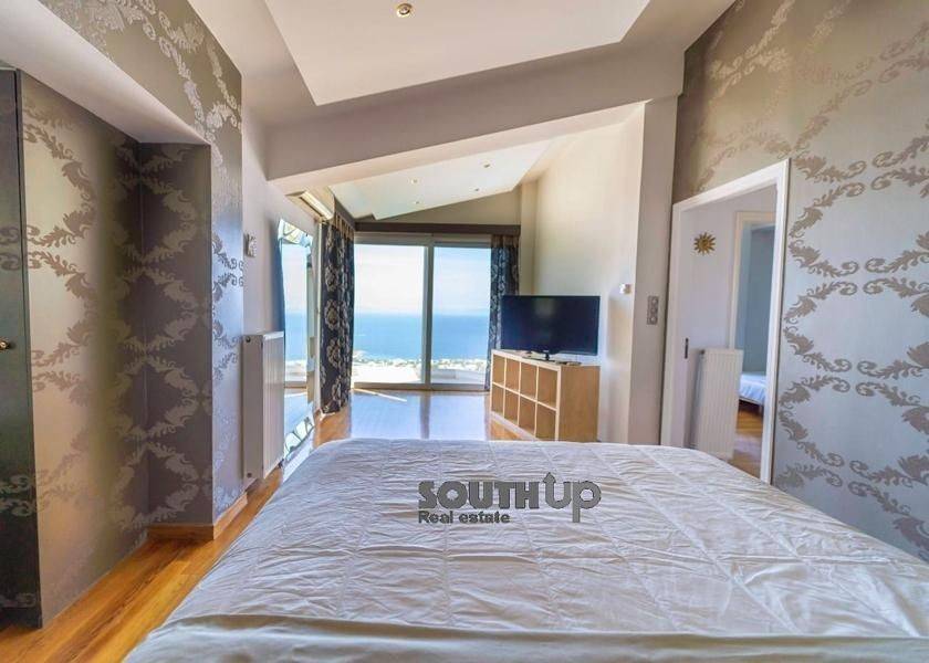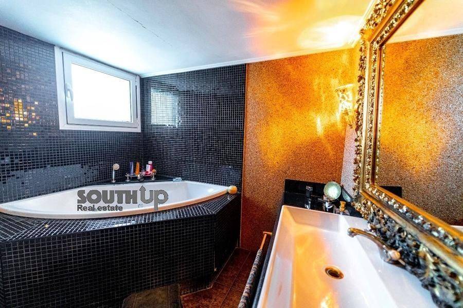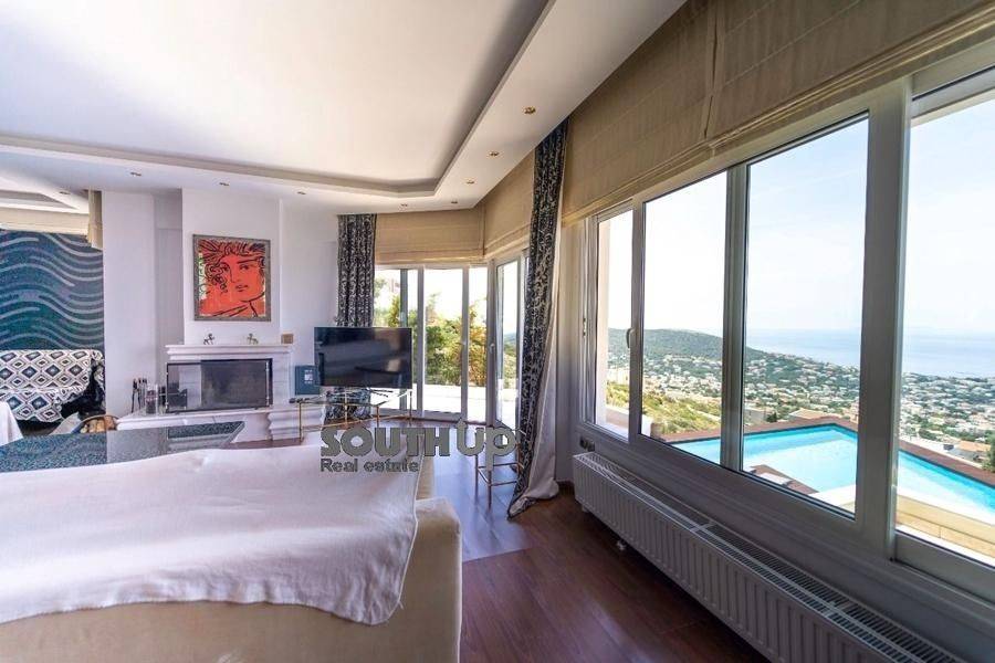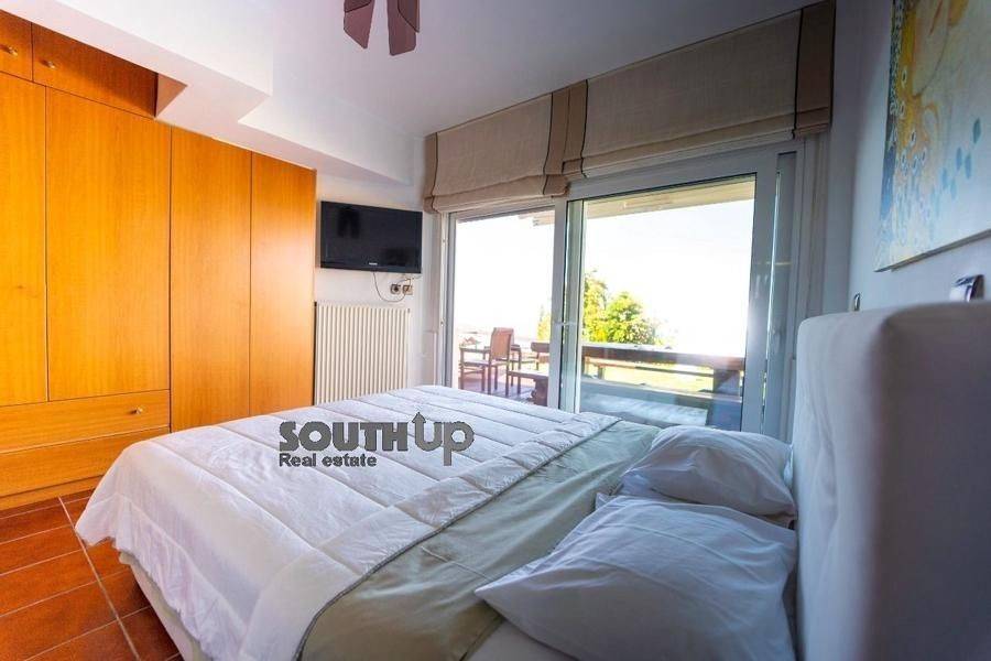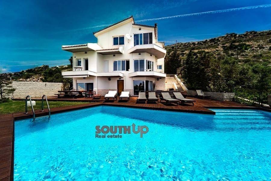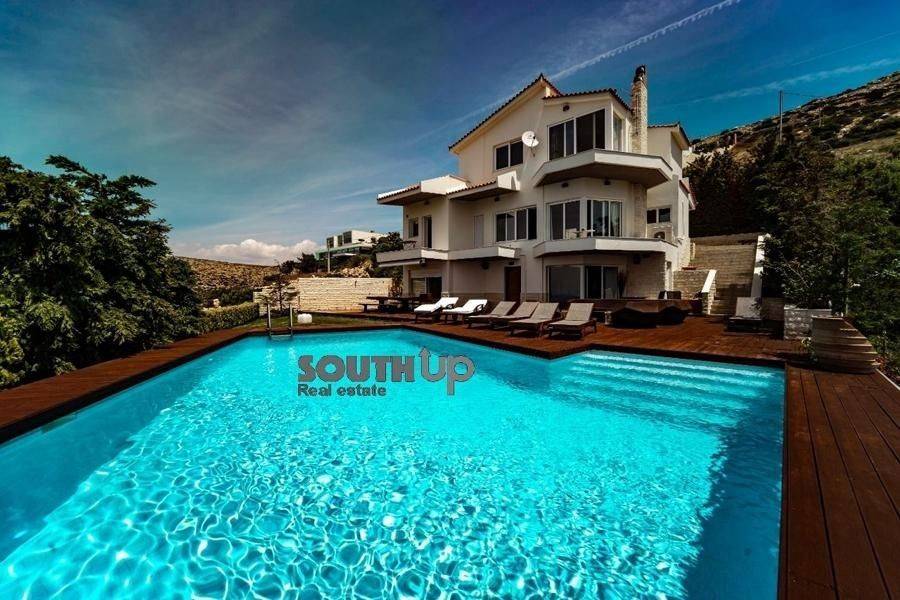 Saronida- Villa 260sqm furnished fully, bedrooms 5, levels 3, ground floor, newly built, year built 2009, energy class B, 2 living rooms, 2 kitchens, bathroom, wc, heating type: autonomous, air condition, parking, parking type/lots, dual aspect apartment, luminous, painted, storage space, solar heater, fireplace, balconies, balcony size 100sqm, frames aluminum, double glazed windows, door screen, floor type marble, night electricity discount rate, secure door, alarm, luxurious, swimming pool, playroom, residential zone, southern orientation, access from inclined.