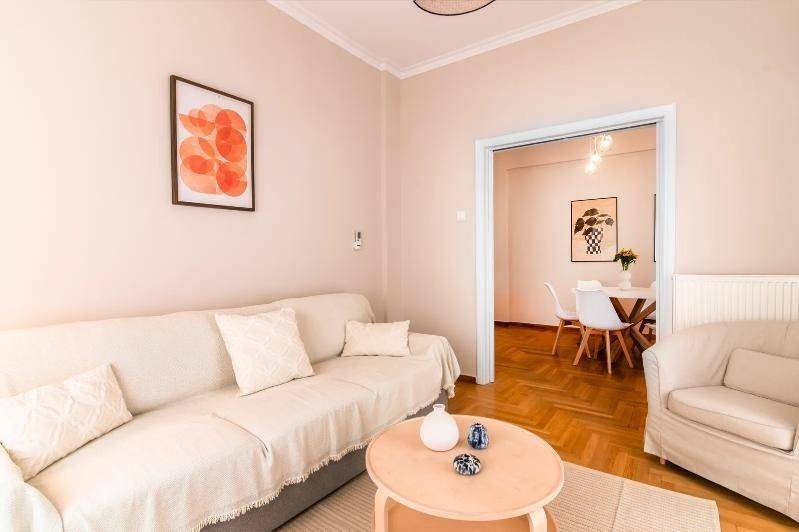 Διαμέρισμα 78 τ.μ. στον 1ο όροφο στο Θησείο. Αποτελείται από δύο υπνοδωμάτια, ένα μπάνιο και ενιαίο χώρο καθιστικού – κουζίνας. Είναι διαμπερές, προσόψεως, πλήρως επιπλωμένο και διαθέτει κλιματισμό, αυτόνομη θέρμανση φυσικού αερίου με ατομική εγκατάσταση, πόρτα ασφαλείας, κουφώματα αλουμινίου και δάπεδα παρκέ