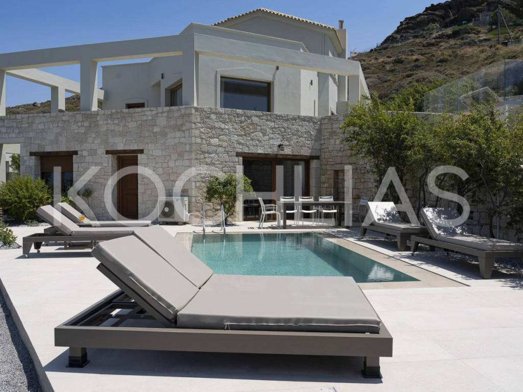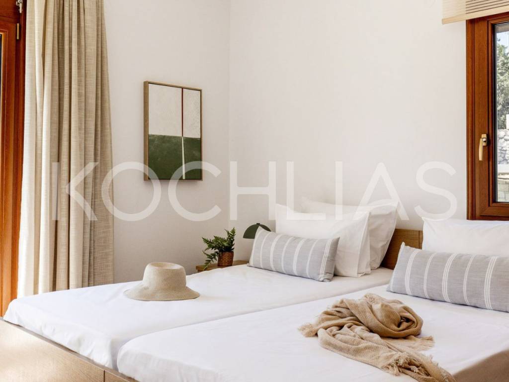 Δείτε την πλήρη φωτογραφική παρουσίαση στο: www.kochliasgroup.grΠεριγραφή ακινήτουΣυγκρότημα τουριστικών επιπλωμένων διαμερισμάτων με 8 ιδιωτικές πισίνες, συνολικά 8 διαμερίσματα, σε οικόπεδο 5.735,82 τ.μ. με άπειρη θέα θάλασσας προς Λυγαριά, Αγ. Πελαγία, Μαδέ και Μονονάυτη.Το συγκρότημα αποτελείται από δύο ανεξάρτητα κτίρια (Κτίριο Α και Κτίριο Β), που πωλούνται και μαζί και χωριστά, με έγκριση χρήσης «Τουριστικά επιπλωμένα διαμερίσματα» σύμφωνα με την οικοδομική άδεια Α/Α Πράξη 614394/28‑2‑2023.Συνολικό εμβαδό κτιρίων: περίπου 705 τ.μ. (Κτίριο Α: 336 τ.μ., Κτίριο Β: περίπου 370 τ.μ.).Συνολικά διαμερίσματα: 8 (3 στο Κτίριο Α, 5 στο Κτίριο Β).Συνολικά υπνοδωμάτια: 16 (8 Υ/Δ στο Α, 8 Υ/Δ στο Β) και 9 λουτρά.Σύστημα θέρμανσης/ψύξης: αυτόνομο fan coil σε όλα τα διαμερίσματα.Εσωτερικά χαρακτηριστικά: πλήρως επιπλωμένα, τζάκι, κλιματισμός, ηλιακός θερμοσίφωνας, αποθήκη, λειτουργική κουζίνα και πολυτελής απλώς επίπλωση.Το Κτίριο Α, έτος κατασκευής 2018, είναι πλήρως αποπερατωμένο και λειτουργικό, με τρεις στάθμες και ένα διαμέρισμα ανά στάθμη:Στάθμη 1 (Ισόγειο): 132 τ.μ., 3 Υ/Δ, 2 λουτρά, βεράντα 60 τ.μ., μηχανοστάσιο με δεξαμενή 22 κ.μ.Στάθμη 2 (Ισόγειο): 130 τ.μ., 3 Υ/Δ, 2 λουτρά, βεράντες 100 τ.μ.Στάθμη 3 (Υπερυψωμένο ισόγειο): 72 τ.μ., 2 Υ/Δ, 1 λουτρό, βεράντες 70 τ.μ., περιβάλλωντας χώρος με γκαζόν 170 τ.μ. και πέργκολα αλουμινίου 25 τ.μ.Κάθε διαμέρισμα στο Κτίριο Α διαθέτει ιδιωτική πισίνα 22–25 τ.μ. με υπερχείλιση, μηχανοστάσιο και δεξαμενές νερού, ενώ στον ακάλυπτο χώρο της στάθμης 2 υπάρχει κοινόχρηστη εγκατάσταση ξυλοφούρνου με ψησταριά.Το Κτίριο Β είναι ημιτελές, περίπου στο 70% κατασκευής, με ολοκληρωμένο φέροντα οργανισμό (οπλισμένο σκυρόδεμα), γυψοσανίδα χωρίσματα, υδραυλικά, ηλεκτρολογικά, εξωτερικά επιχρίσματα και μερική διαμόρφωση περιβάλλοντα χώρου.Στάθμη 1 (Ισόγειο): 2 διαμερίσματα (1 με 2 Υ/Δ – 85,9 τ.μ., 2 με 1 Υ/Δ – 47,9 τ.μ.), μηχανοστάσιο για κτίριο και 2 πισίνες, και χώρος ρεσεψιόν.Στάθμη 2: 2 διαμερίσματα (1 με 2 Υ/Δ – 83,9 τ.μ., 1 με 1 Υ/Δ – 47 τ.μ.), με βεράντες συνολικά 170 τ.μ.Στάθμη 3: 1 διαμέρισμα 72 τ.μ. με βεράντες 70 τ.μ.Στον ακάλυπτο του Κτίριου Β υπάρχει κοινόχρηστη ψησταριά, ενώ έχει ολοκληρωθεί η κατασκευή των 4 πισινών από οπλισμένο σκυρόδεμα, με πλήρεις υδραυλικές και ηλεκτρολογικές εγκαταστάσεις και μηχανοστάσια.Εξωτερικά χαρακτηριστικά:Το συγκρότημα διαθέτει 8 ιδιωτικές πισίνες, εξοικονομητικές επιπλώσεις, κήπο με φυσικές φυτεύσεις και πέργκολες, βεράντες και ανοικτές θέσεις parking.Περίφραξη και τοπίο πλήρως διαμεσολαβημένα με φυσική πέτρα και οργανωμένο περιβάλλοντα χώρο.Προσανατολισμός βορειοδυτικός/νότιος, με ανεμπόδιστη θέα προς το Κρητικό πέλαγος και τις παραλίες της περιοχής.Στο εσωτερικό της ιδιοκτησίας υπάρχει νόμιμη γεώτρηση 100 μέτρων, σε πλήρη λειτουργία, με ημερήσια άντληση 250 κ.μ. νερού υψηλής ποιότητας για οικιακή χρήση και άρδευση του κήπου.Τοποθεσία και γύρω περιβάλλονΤο ακίνητο βρίσκεται στη θέση «Αμμούδι», στο δρόμο προς τον οικισμό «Θησέας», περίπου λίγα μέτρα πριν την είσοδο του συνεταιρισμού Α.Τ.Ε. του Δήμου Μαλεβιζίου, εντός οικιστικής ζώνης με ήσυχο και οικογενειακό περιβάλλον.Απόσταση από την παραλία Αγ. Πελαγίας: λίγα λεπτά οδήγησης.Πρόσβαση στην πόλη του Ηρακλείου: εύκολη μέσω κύριων οδικών αξόνων.Εγγύτητα σε βασικές υποδομές (σούπερ μάρκετ, καφετέριες, εστιατόρια, τουριστικές υποδομές).Η περιοχή συνδυάζει ησυχία και άνεση με ιδιωτικότητα, ενώ προσφέρει ανοιχτές θέεις προς το