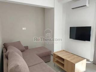 With excellent layout, luxuriously renovated studio with materials of high standards and unique aesthetics. It is centrally located in One Salonica, with public transport throughout the city, a plethora of shops and restaurants, next to the stop: 1286 Kōletē, only 900m straight the Metro stop