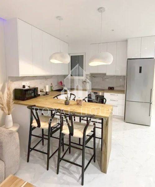 Argyroupoli, Centre - Apartment 70sqm fully furnished, bedrooms 2, levels 1, 3rd, renovated, year built 1980, renovation year 2025, energy class B+, living room, kitchen, bathroom, heating type: central (oil), air condition, quiet, dual aspect apartment, luminous, frontage, painted, solar heater, balconies, tents, elevator, aluminum frames, double glazed windows, door screen, night electricity discount rate, secure door, alarm, luxurious, residential zone, special offer.