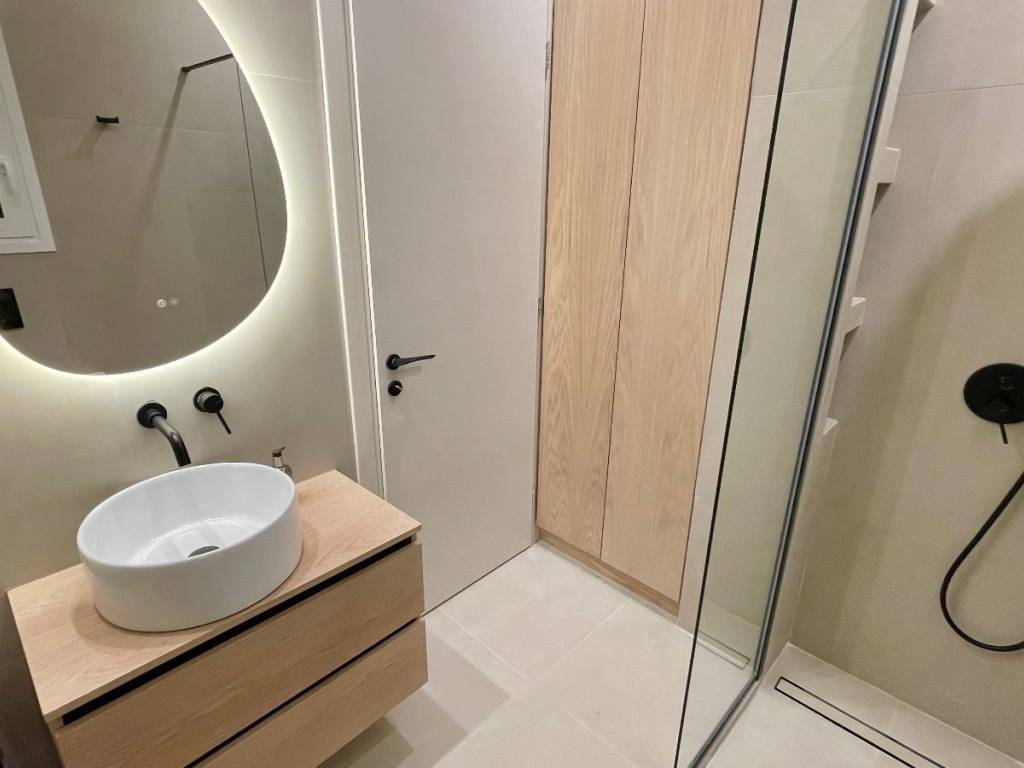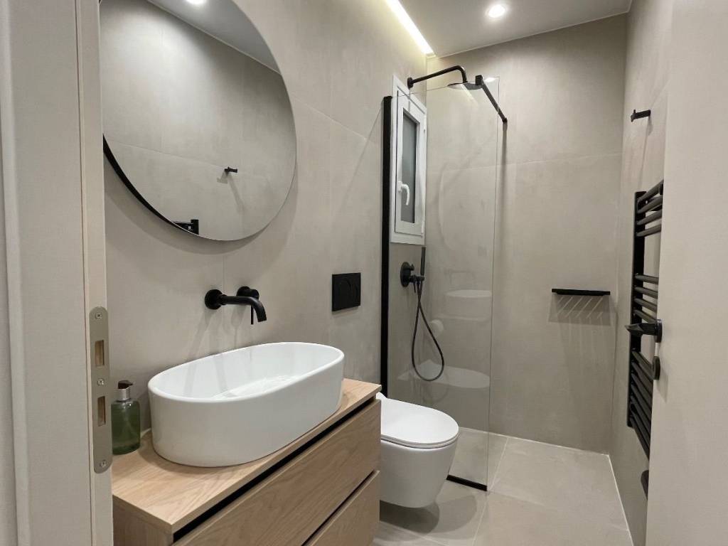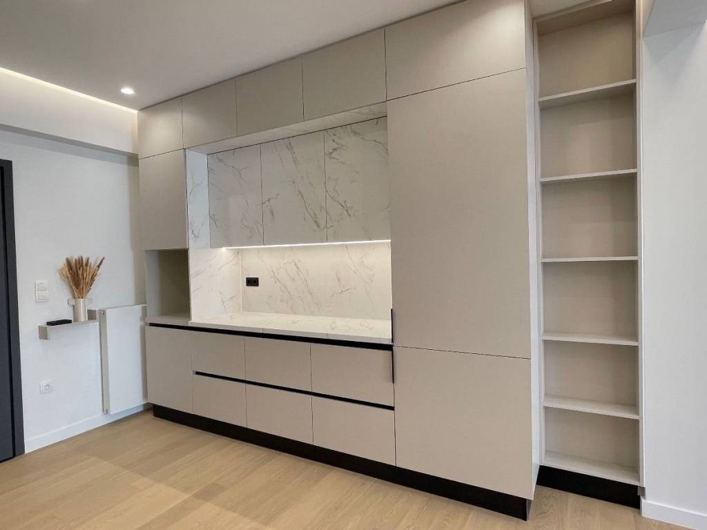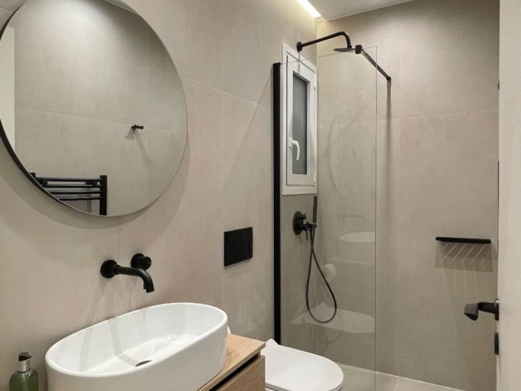 Παγκράτι ΕΝΟΙΚΙΑΖΕΤΑΙ προνομιακό ανακαινισμένο διαμέρισμα στον 4ο όροφο, φωτεινό και γωνιακό, συνολικής επιφάνειας 73 τ.μ. . Αποτελείται από 2 μεγάλα υπνοδωμάτια, σαλοκουζίνα και 2 μπάνια . Μόλις ολοκληρώθηκε ριζική ανακαίνιση υψηλής αισθητικής, που περιλαμβάνει νέα υδραυλική και ηλεκτρολογική εγκατάσταση, θερμομόνωση και ηχομόνωση, στους τοίχους και την οροφή. Έχουν τοποθετηθεί νέα ενεργειακά κουφώματα EUROPA με σίτες, νέες τέντες, ψευδοροφές με κρυφό φωτισμό σε όλα τα δωμάτια και καινούρια δρύινα πατώματα. Διαθέτει κεντρική θέρμανση - πετρελαίου, καινούργια κλιματιστικά, πόρτα ασφαλείας και πολλούς αποθηκευτικούς χώρους. Να σημειωθεί πως οι φωτογραφίες αποτελούν πραγματική απεικόνιση του χώρου και όχι προιόν σχεδιαστικού προγράμματος. Apartment FOR RENT in Pagkrati . This bright, 73 sq. m., corner apartment is on the 4th floor and features 2 large bedrooms, an open-plan kitchen/living room and 2 bathrooms. A complete modern renovation was just concluded that includes new Electrical and Hydrolic installation, Thermal insulation and Soundproofing both in the walls and ceiling. It features new Aluminium window frames with insect screens, new awning, hidden lighting in all rooms and Οak floors. The property also boasts Heating system: Central heating - petrol, Armourplated door, new Air Conditioning units and varius storage spaces. Of note, the photos are of the real finished apartment, not computer generated.