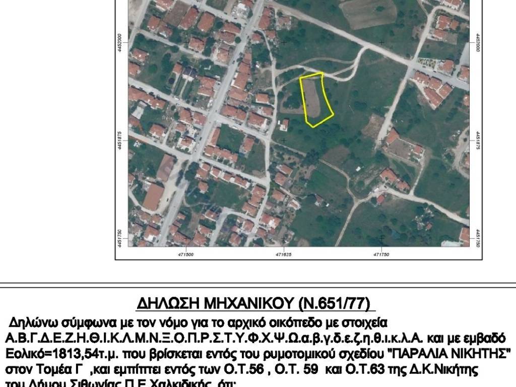 Οικόπεδο άρτιο στο κέντρο της Νικήτης, 300m απο την παραλία. Απο τα τελευταία μεγάλα, αν όχι το τελευταίο. Είναι 1812τ.μ επιπεδο, σχεδόν ενα ολοκληρο οικοδομικό τετράγωνο. Γυρω γύρω υπάρχουν πολύ μικρά κομμάτια, που ο δυνητικός αγοραστής αν τα αγοράσει μαζί(έχουν εντοπιστεί όλα) παίρνει ολοκληρο το τετράγωνο και δεν χρειάζεται τακτοποίηση. Το οικόπεδο μόνο του χρειάζεται τακτοποίηση που θα εχει ενα μικρό κοστος 50-60.000€ max. Έχει αποχαρακτηριστει και εντάχθηκε στο νέο πολεοδομικό. Είναι κατάλληλο για μεγάλες επιχειρήσεις, super market, ξενοδοχεία, διαγνωστικό ή εμπορικό κέντρο, πολυτελείς κατοικίες. Μόνο σοβαροί αγοραστές, όχι μεσίτες.