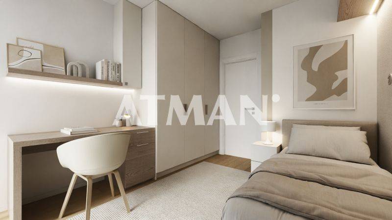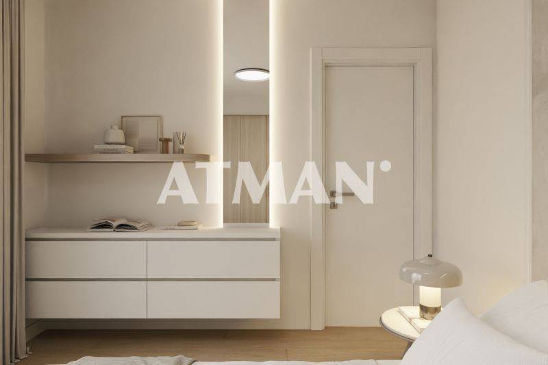 The buildings combine modern materials such as white rendered surfaces, glass elements, and ceramic cladding, creating a clean and timeless aesthetic. Interior spaces are finished with wide natural oak flooring in bedrooms, large-format ceramic tiles in bathrooms, and carefully designed common areas that reinforce the project’s contemporary identity. The property includes one pilotis parking space and an underground storage room of approximately 18 sqm, adding practicality for everyday living. The complex also benefits from open shared spaces and accessible roof areas that enhance the residential experience.