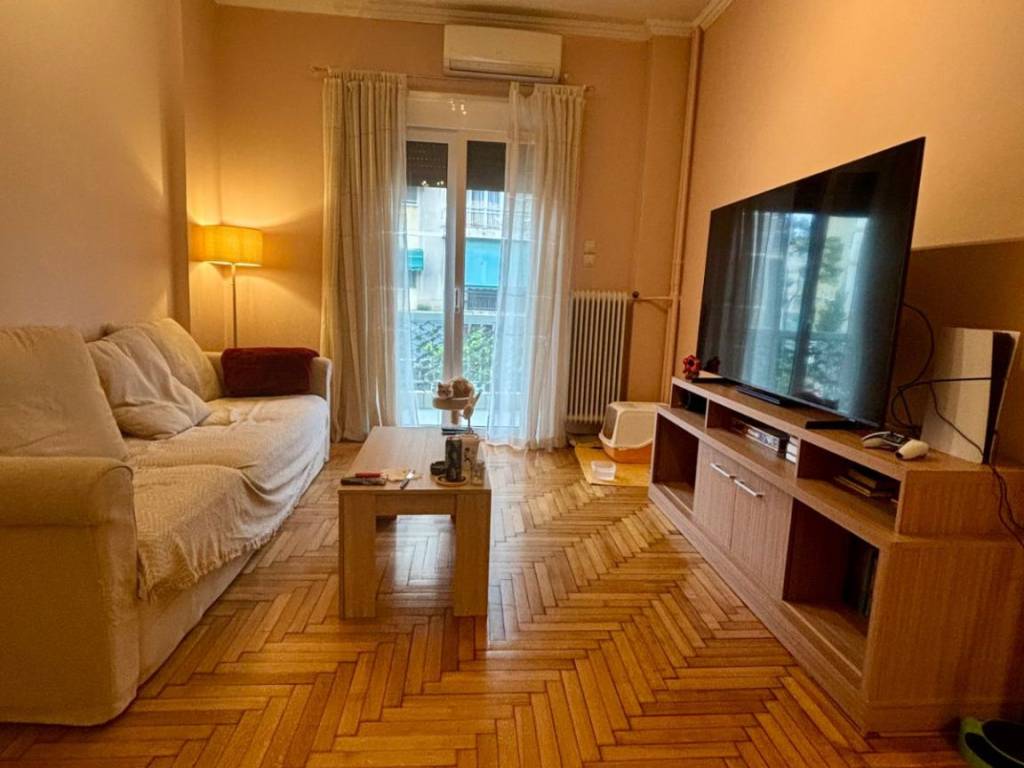 Μπροστινό ευήλιο δυάρι πρώτου ορόφου με μεγάλο μπροστινό μπαλκόνι, κεντρική οδός απέναντι από νοσοκομείο Παίδων και Λαϊκό δίπλα από Οδοντιατρική σχολή Αθηνών όπως και σε σούπερ μάρκετ αλλά και σε στάση λεοφωρειου. Πλήρως ανακαινισμένο, κουφώματα αλουμινίου ηλεκτρικά παντζουρια και δύο air condition, πόρτα ασφαλειας . Διατείθεται πλήρως επιπλωμένο με: ψυγείο inox, κεραμικές εστίες αφής, φούρνος, πλυντήριο-στεγνωτήριο, κρεβάτι-στρώμα, εντοιχισμένη ντουλάπα, συρταριέρα, καναπές, τραπεζαρία, έπιπλο τηλεόρασης, κομοδίνο, κουρτίνες. Διαθέσιμο από πρώτη Μαΐου.